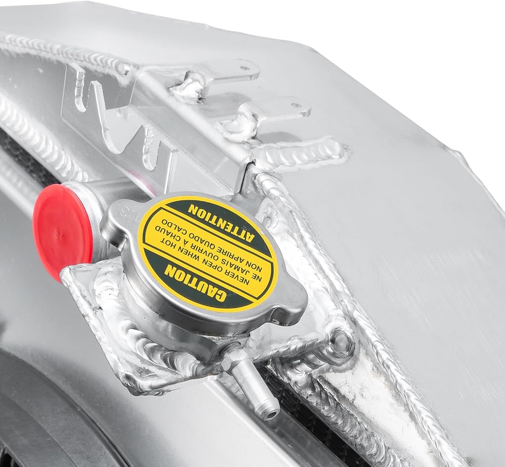 This Aluminum Radiator is designed to provide maximum cooling efficiency to prevent premature engine failure. Its light-weight, and high-heat transferring aluminum features a tube and fin design that, dramatically increases surface area that enables the heat to dissipate more efficiently. Most importantly, it has a much higher capacity for coolant than stock ones, which means that your cooling system will be more efficient and will be more resistant to temperature surges in racing applications.