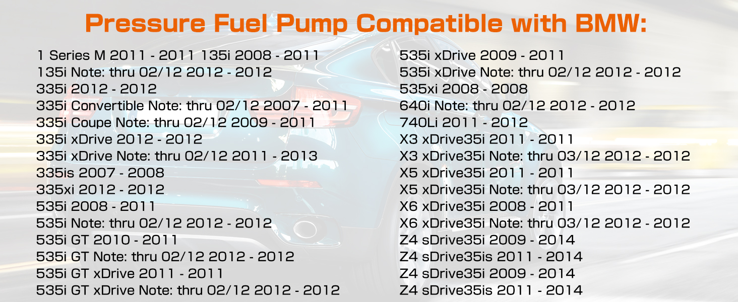 توافق واسع: مناسبة لنطاق الجهد 6V-16V، والجهد الاسمي 12V ±0.1V، وضغط عمل البنزين 5.0bar-5.9bar، تم تصميم مضخة الوقود هذه لتلبية المتطلبات المحددة لمحركات سلسلة N54 N55.