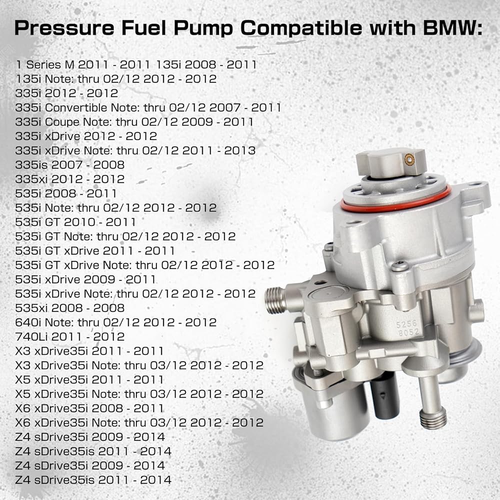 أداء محسّن: استبدل أرقام أجزاء المعدات الأصلية 13517616446، 13517616170، 13406014001، 13517594943 بمضخة وقود عالية الضغط مصنوعة بآلة CNC متوافقة مع محركات سلسلة BMW N54 N55، بما في ذلك Z4، 335i، 335is، X5، X3، و535i.