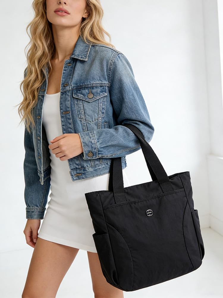 خامة عالية الجودة: حقيبة يد نسائية مصنوعة من نسيج نايلون مقاوم للماء ومقاوم للتمزق يوفر تصميمًا ناعمًا وعصريًا، ومتانة، وحماية قوية ضد التجاعيد. هذه حقيبة حمل قابلة لإعادة الاستخدام، تصميم بسيط بلون موحد، يمكن مطابقتها مع أي ملابس