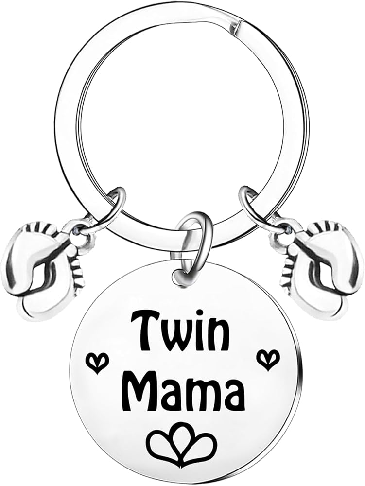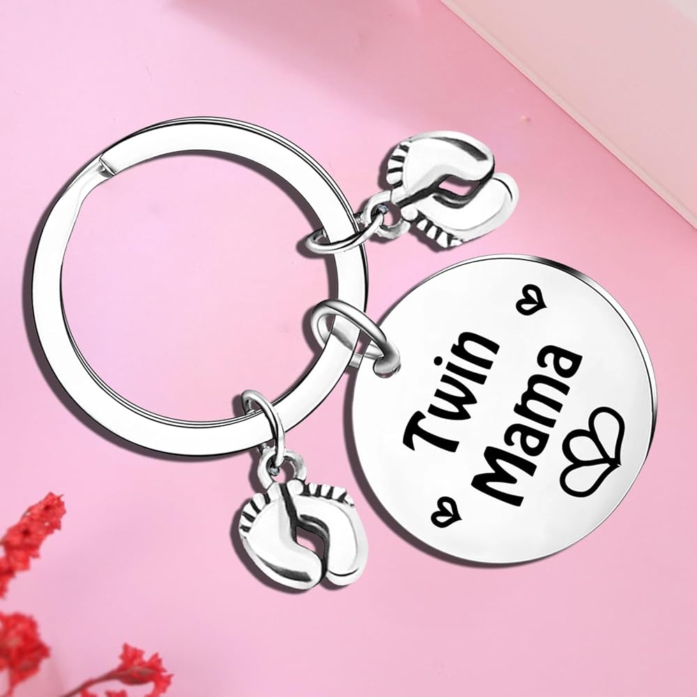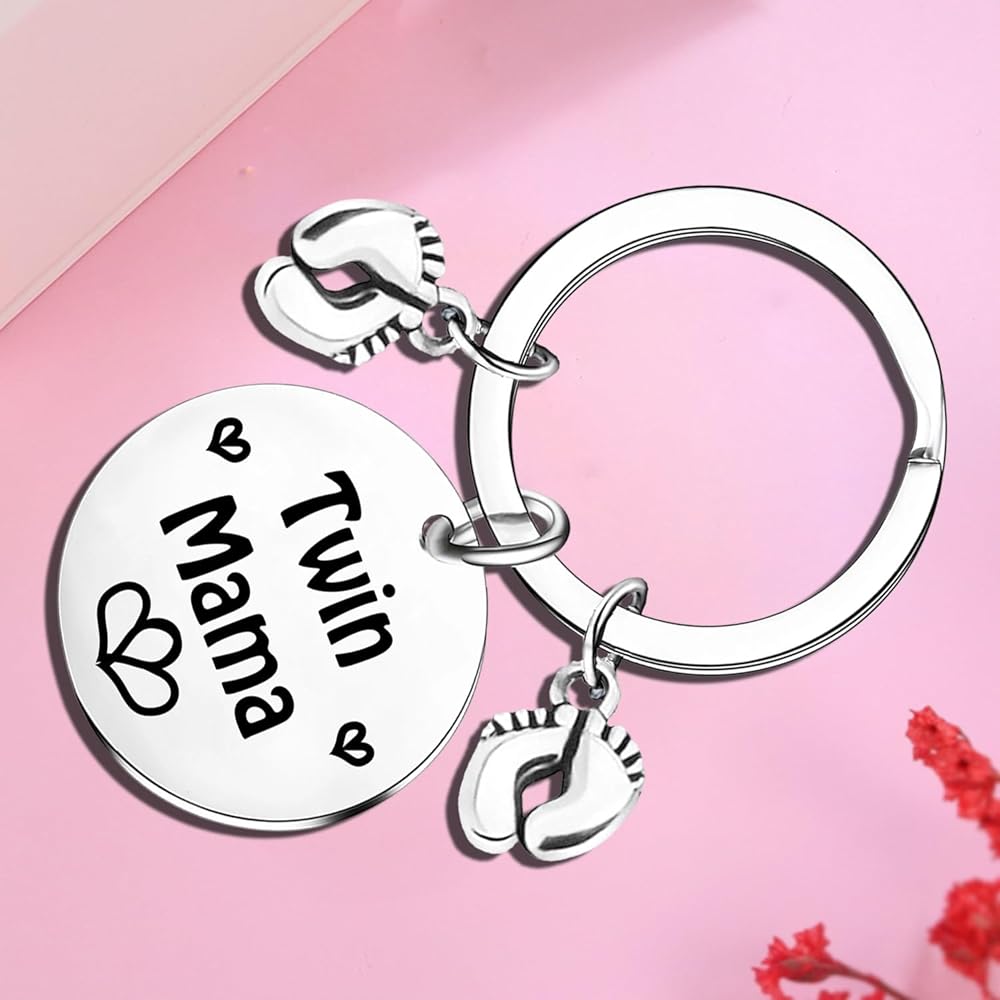 Mother's Day Gifts For Twin Mom Twins Mama Gift Keychain for Twins Mama Pregnancy Gifts For New Mom Baby Shower Announcement Gift