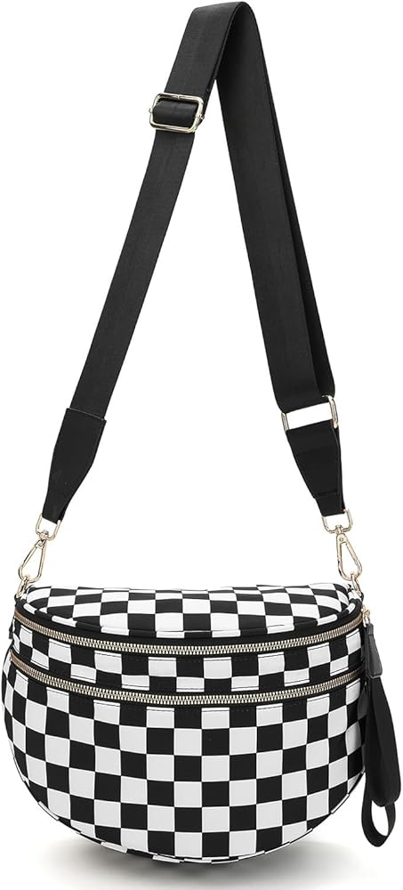 Spacious Checkered Nylon Crossbody Bag Bum Bag for Women Checkered Purse Fanny Packs Belt Bag