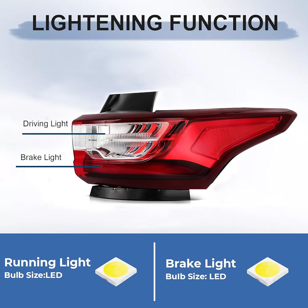 【Material】Our [2018-2021 Traverse taillights] consist of ABS plastic housing and polycarbonate lens, offering excellent weather resistance and impact resistance.It can resist the impact force of small stones that may pop up on the road surface, and is not prone to deformation or damage in the high-temperature environment generated during the use of taillights.