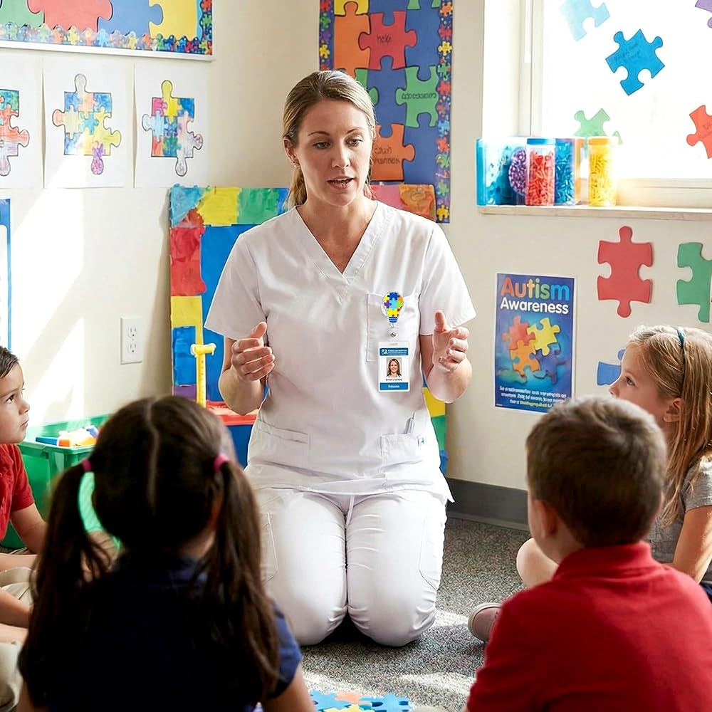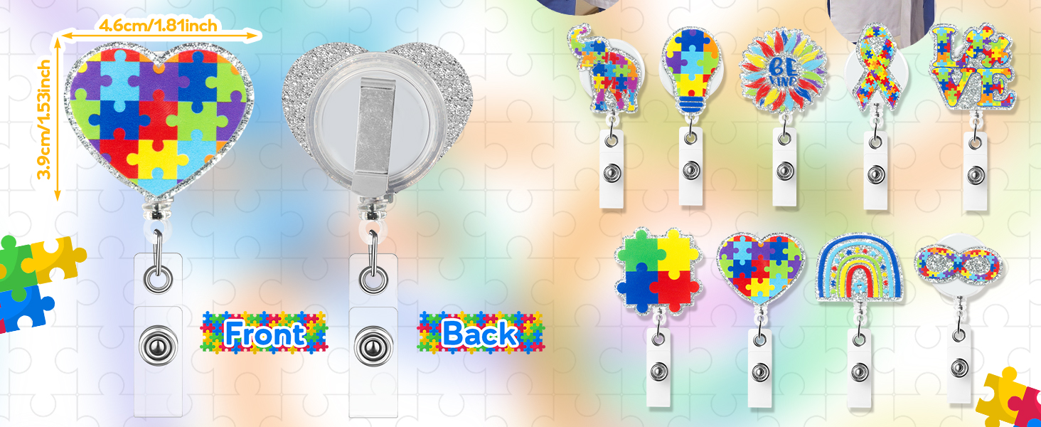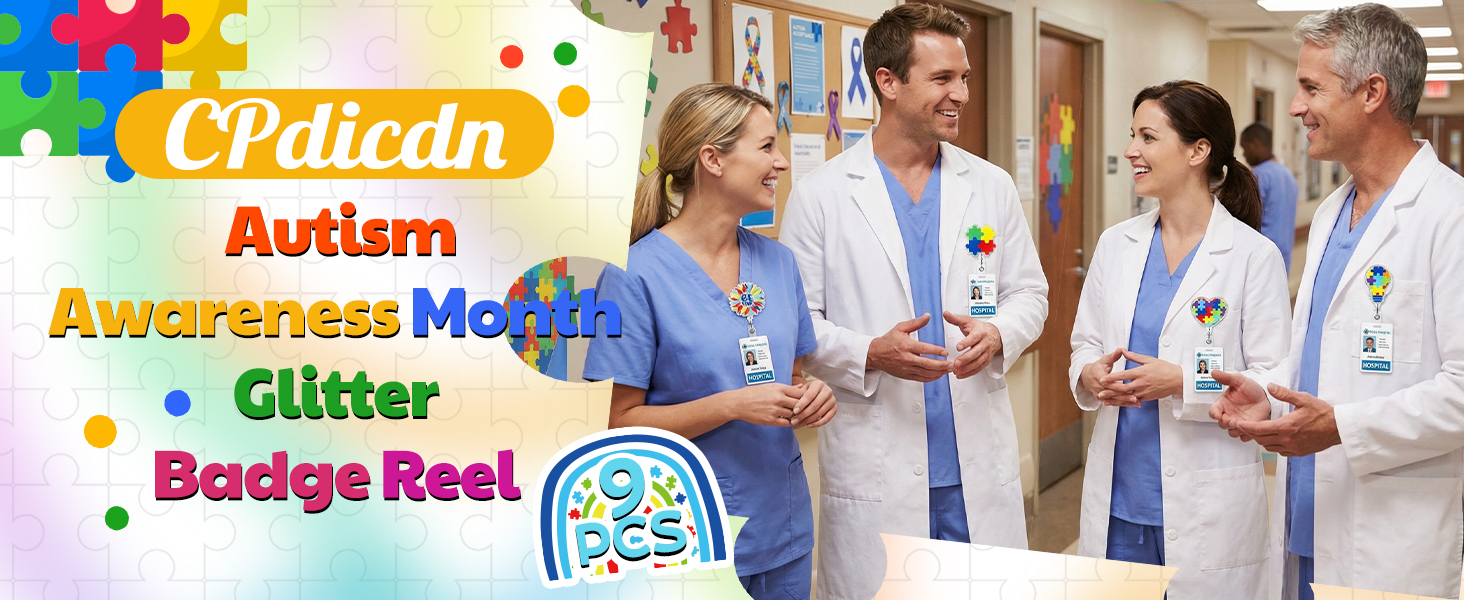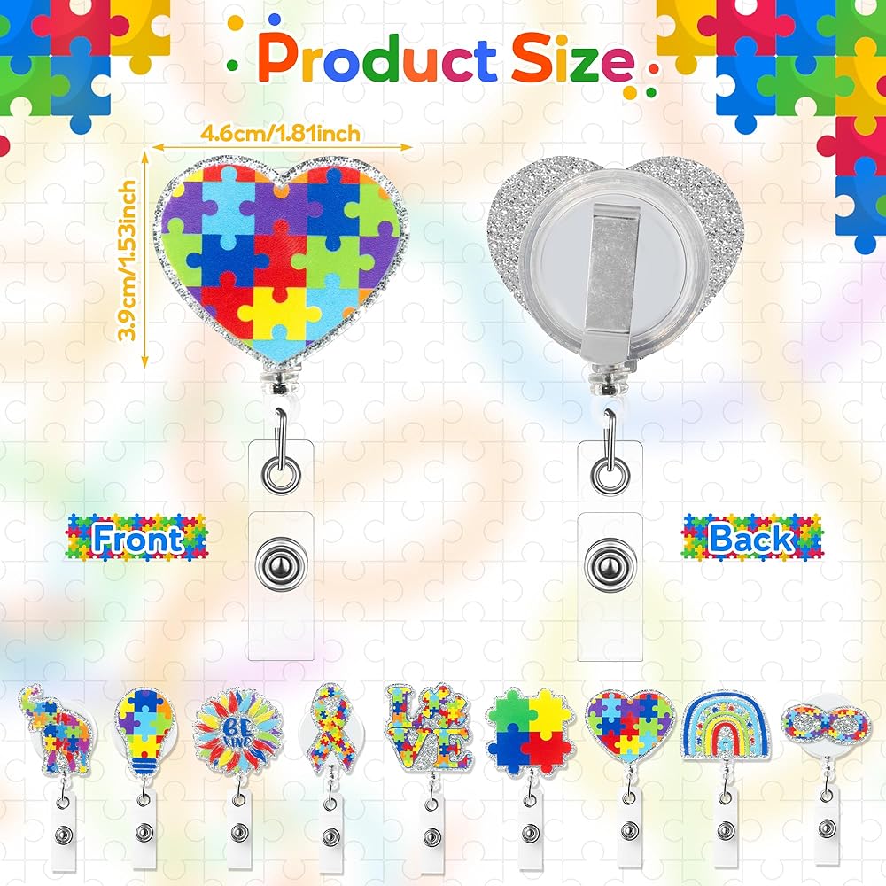 9 قطع بكرة شارة شهر الوعي بالتوحد، لغز لامع من الأكريليك قابل للسحب، مشبك شارة التمريض، قوس قزح Be Kind، بطاقة الهوية، حامل بطاقة الهوية، ملحقات مشبك التمساح المكتبي لطلاب الطبيب والممرضات