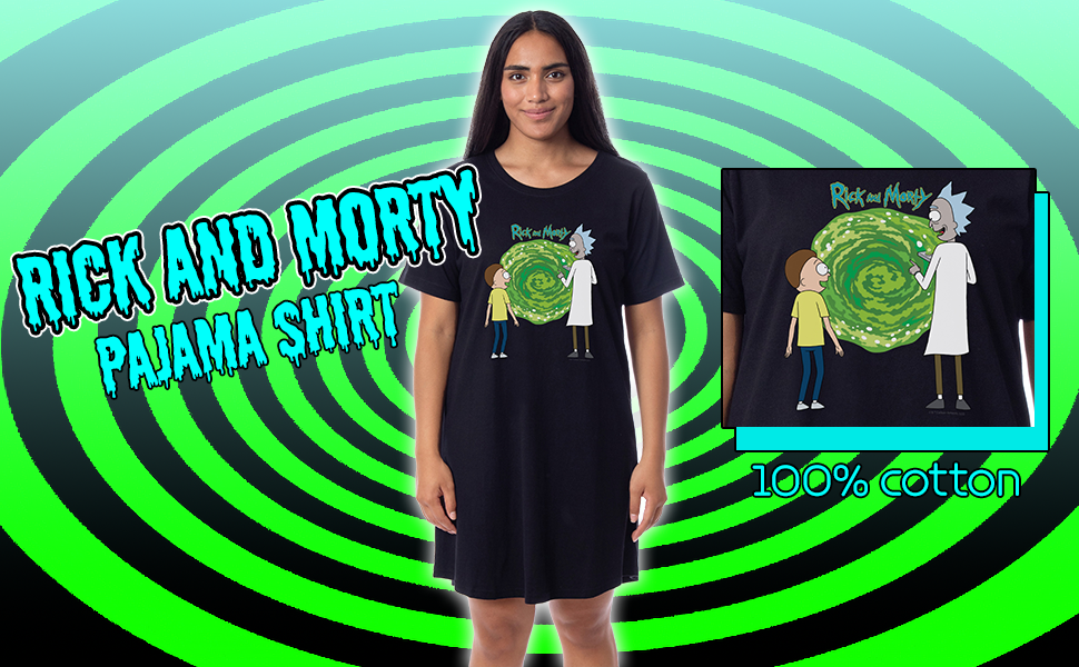 CLASSIC DESIGN - With this pajama dress, you can show off how much of a fan you are of the series! This Rick and Morty pajama nightgown dress features the two characters, Rick Sanchez and Morty Smith, along with one of the traveling portals!