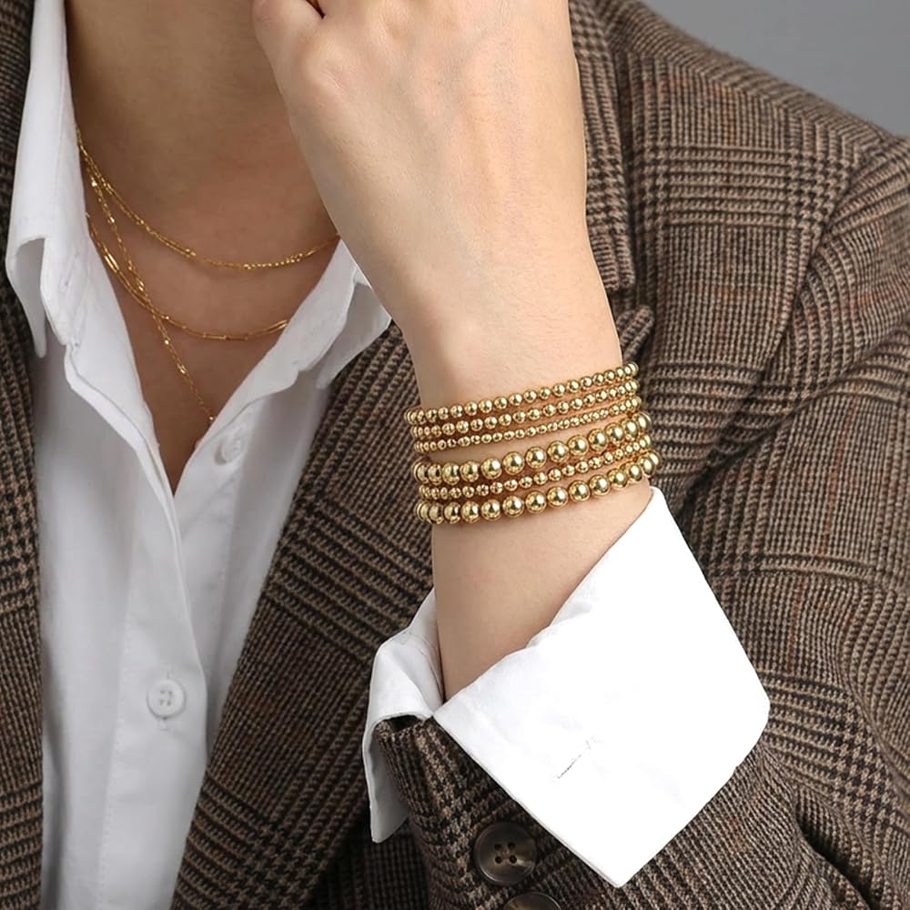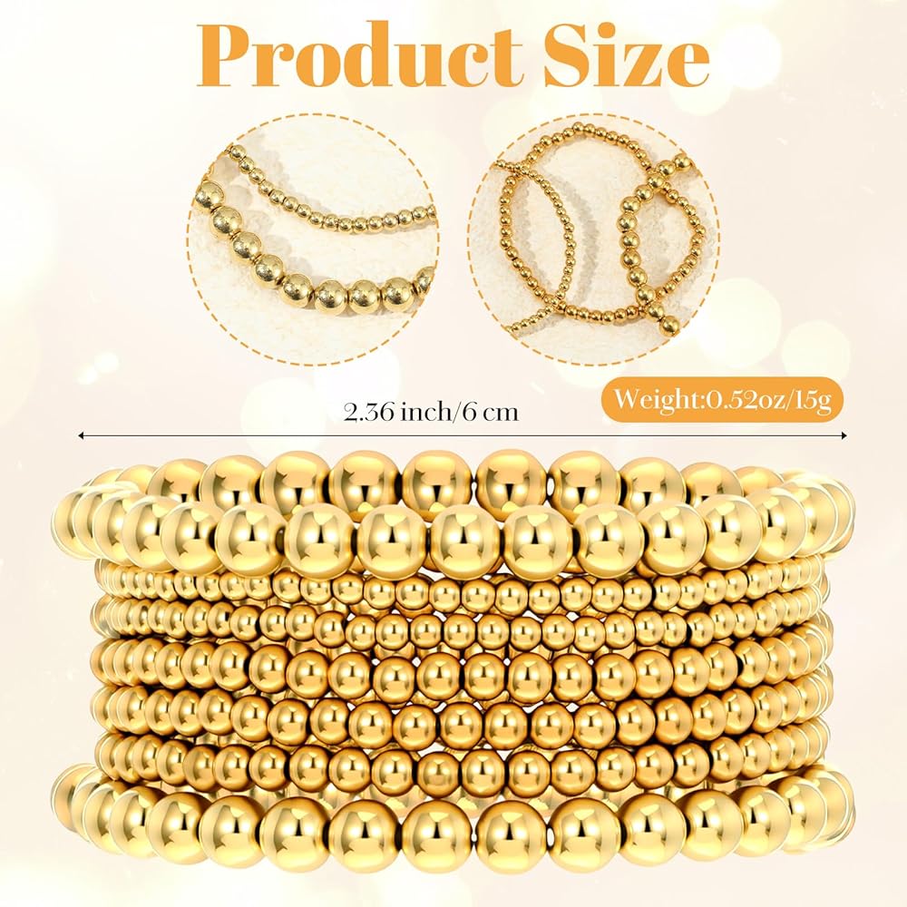 • Elegant and Versatile: Crafted with a blend of style and comfort, our stackable bracelets for women feature an elegant design that complements any attire. The stretchable plastic of bracelets gold ensures a perfect fit for all wrist sizes. These gold beaded bracelets are not only fashionable but also versatile, suitable for both casual and formal occasions.