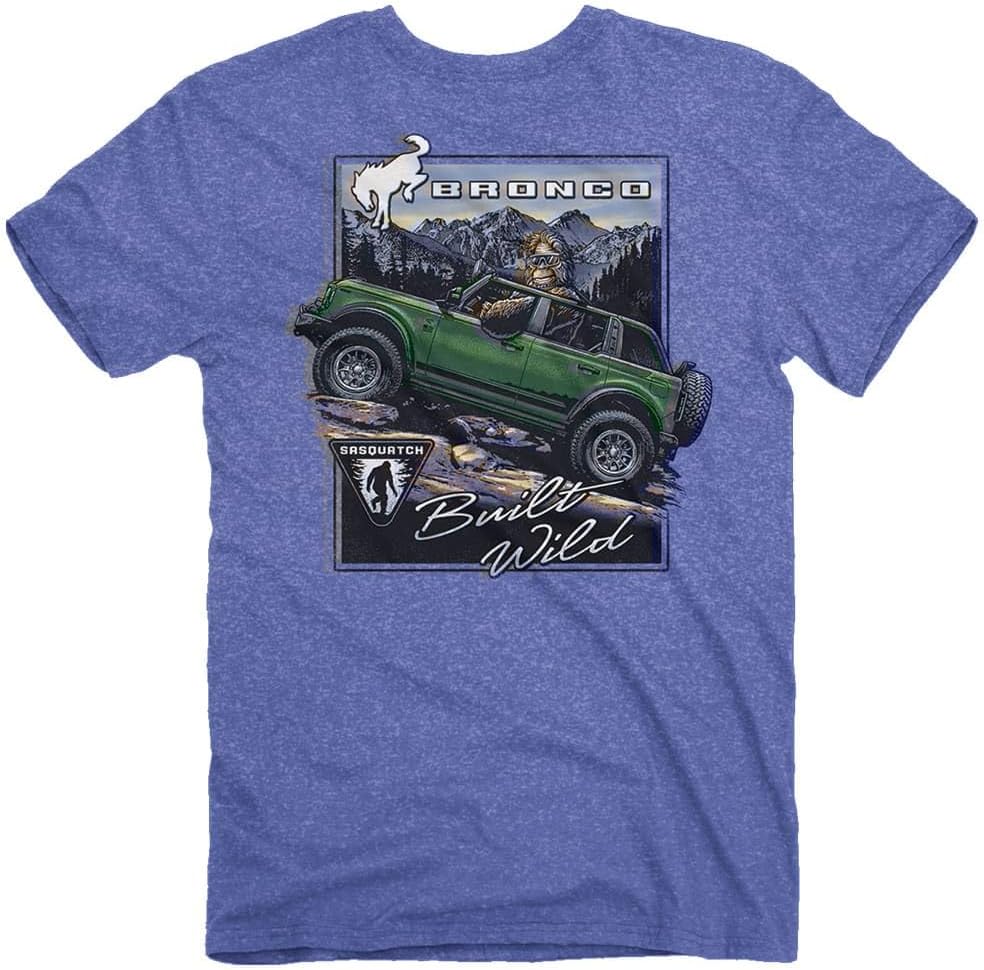 Tackle any terrain in the super-soft Ford Bronco Sasquatch T-Shirt. Crafted from 4.3 oz lightweight fabric with a premium blend of 65% ringspun cotton and 35% polyester, this versatile tee features an impressive back print graphic alongside the iconic Ford Bronco logo on the front left chest. The high-quality screen-printed artwork is built to last, withstanding hundreds of washes without fading. Available in heather royal, which offers a more vibrant blue shade than the standard heather blue. Bronco is a trademark, used under license.