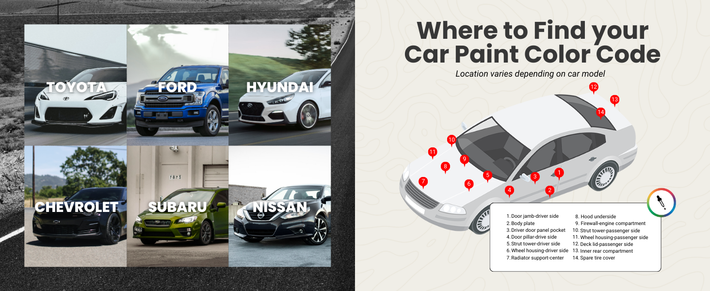 • طلاء السيارات من TouchUpDirect مدعوم بضمان مطابقة الألوان للحصول على تطابق تام مع لون سيارتك. قبل البدء في إصلاح طلاء سيارتك، استخدم بطاقة الاختبار الخاصة بنا وتعرف على أدوات تطبيق الطلاء الخاصة بنا. نحن هنا للمساعدة في حل أي مخاوف أو اختلافات في الألوان.