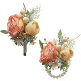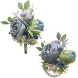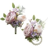 Boutonniere Hand Corsage Set, Artificial Flowers Accessories for Wedding Prom Party Homecoming Celebration Suit Decorations