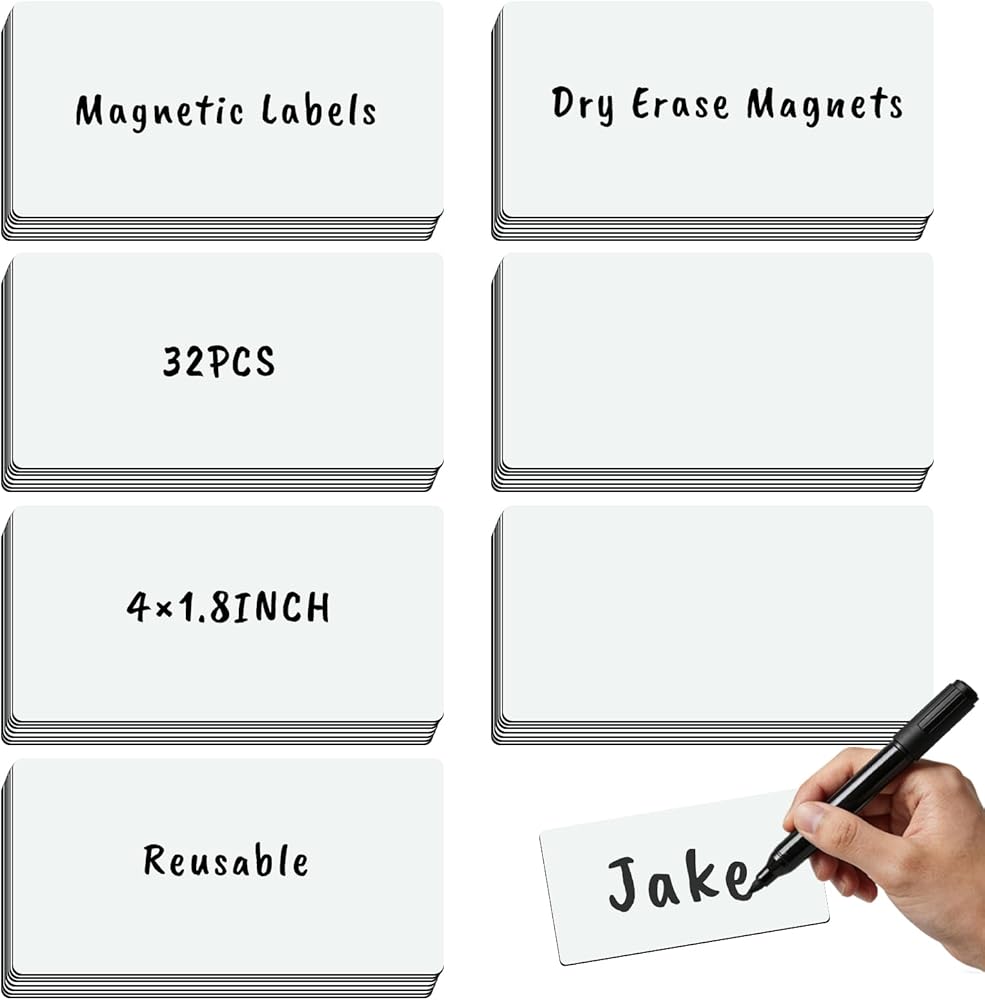 ملصقات مغناطيسية عالية الجودة: تتميز هذه الملصقات المغناطيسية بواجهة بيضاء قابلة للمسح الجاف مثالية للكتابة القابلة لإعادة الاستخدام. مثالية للاستخدام كبطاقات أسماء مغناطيسية أو ملصقات ملصقات متعددة الاستخدامات للمسح الجاف، يبلغ مقاس كل منها 3.2 × 1.2 بوصة - رائعة لتنظيم المكاتب أو المستودعات أو الفصول الدراسية أو المطابخ.