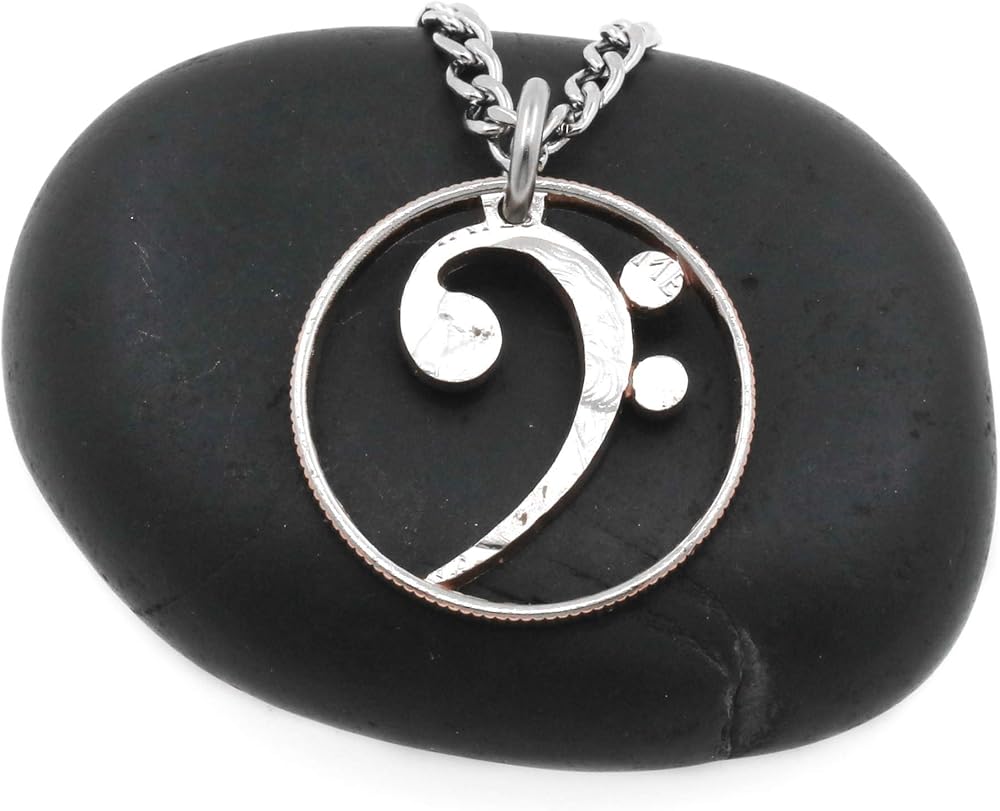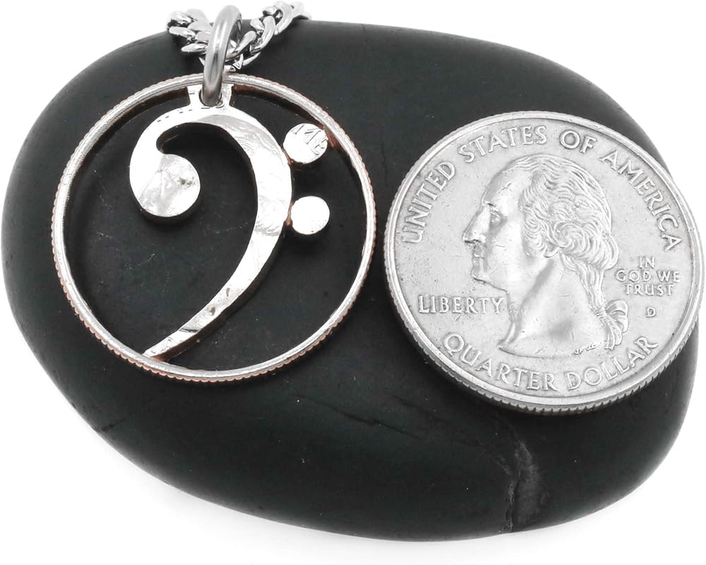 قلادة Bass Clef، ملاحظة موسيقية مجوفة، هدية مجوهرات موسيقية، مقطوعة ومصقولة من ربع، عملة مقطوعة يدويًا، حسب NameCoins