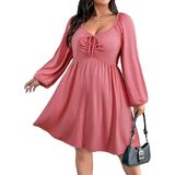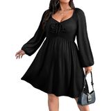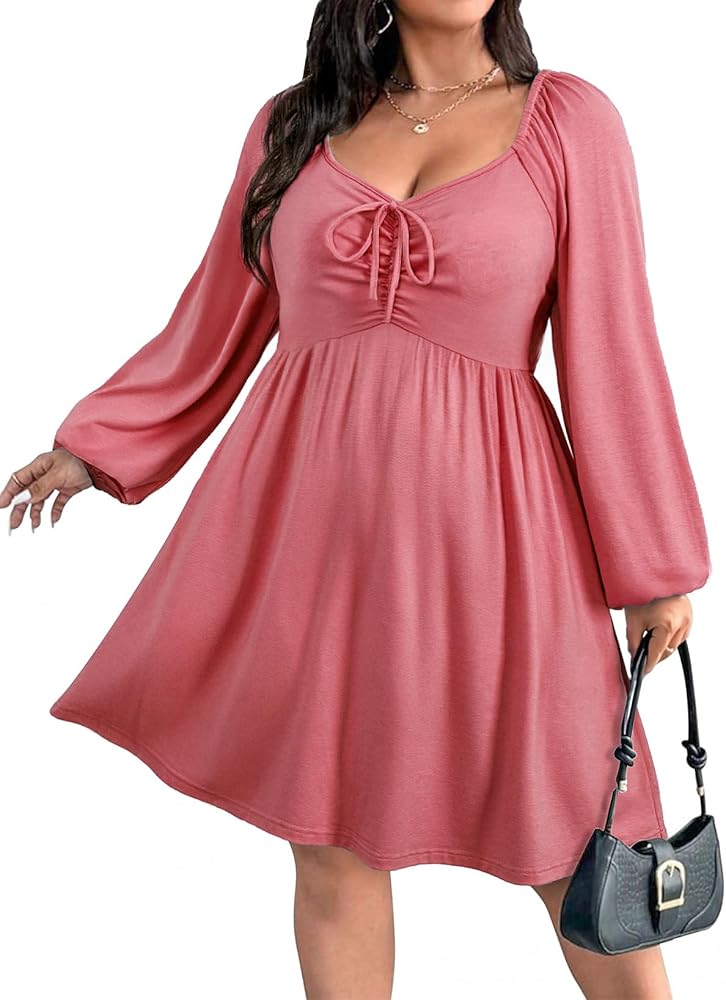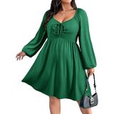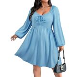 فساتين AlvaQ النسائية بمقاسات كبيرة لخريف 2025 بأكمام طويلة وربطة أمامية مكشكشة على شكل قلب فستان على شكل حرف A (L-4X) in Kuwait