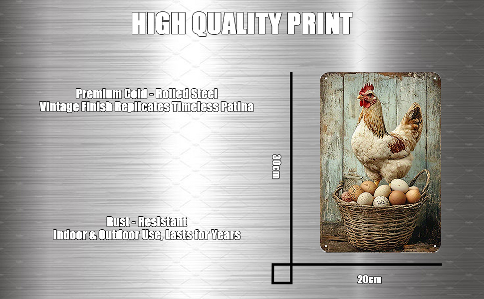 • 【مادة ممتازة】مصنوعة من سبيكة القصدير. 8 × 12 بوصة (20 × 30 سم). سطح كل لافتة من قصدير الدجاج أملس، كما تمت معالجة الحواف الأربعة لمنع خدش يديك. فهي مقاومة للطقس ومقاومة للماء، ويمكن استخدامها على مدار العام، وليس من السهل أن تتلاشى.