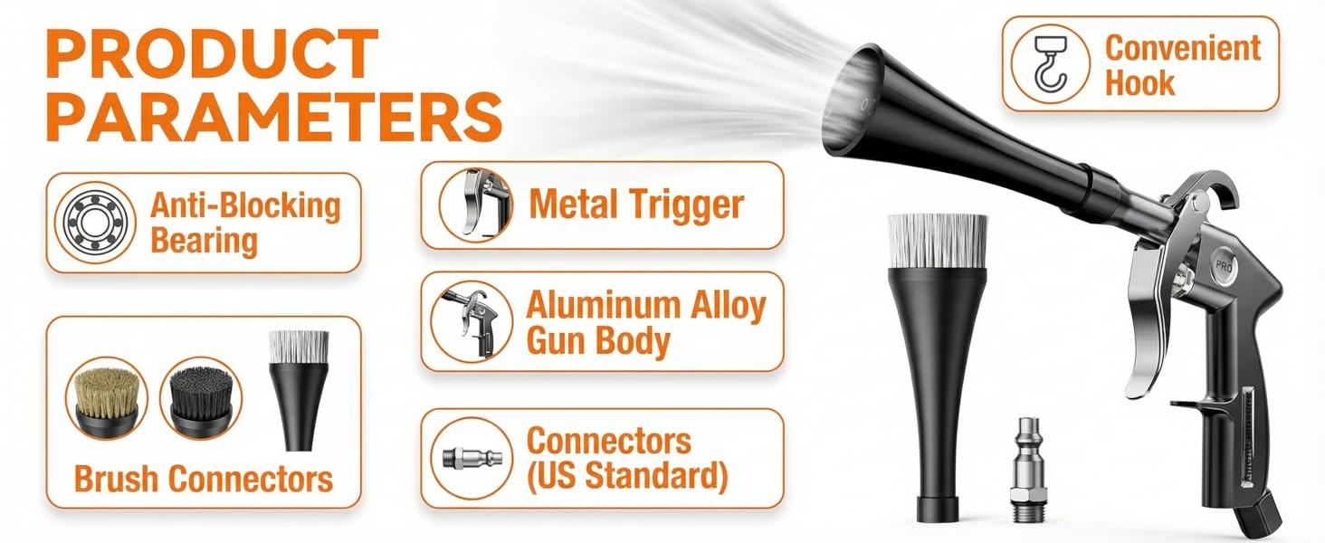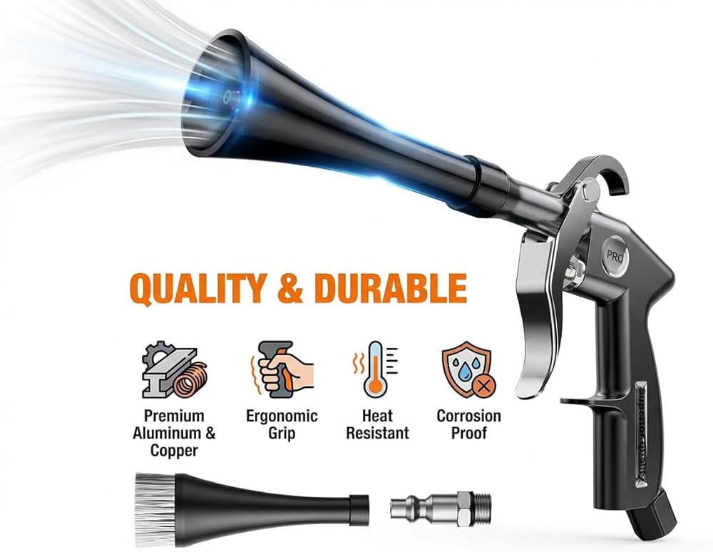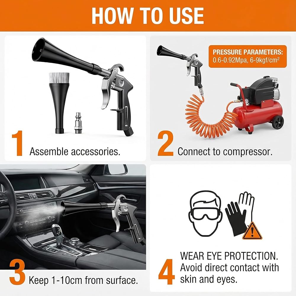 【هدية مثالية لمحبي السيارات】أداة تفصيلية يجب اقتناؤها لأصحاب السيارات والمتحمسين والميكانيكا. سواء كان ذلك لأعياد الميلاد أو العطلات أو المناسبات الخاصة، فإن مسدس تنظيف السيارة هذا يجعل عملية تفصيل السيارات أسهل ويحافظ على نظافة المركبات.