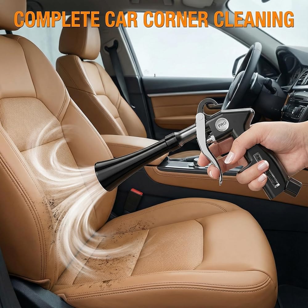 【تنظيف هواء مضغوط قوي】استخدم تدفق الهواء عالي الضغط لإزالة الأوساخ والغبار والحطام من الأجزاء الداخلية للسيارة. مثالي للسجاد والمقاعد والفتحات والدرزات والمناطق التي يصعب الوصول إليها دون الإضرار بالأسطح الحساسة.