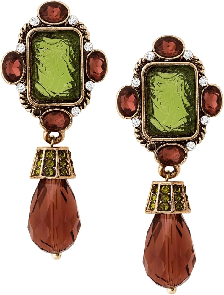 • Dangle style, high quality zinc alloy, retro vintage desgin with green and brown details, push-back closure