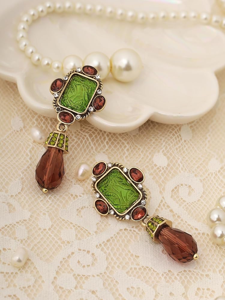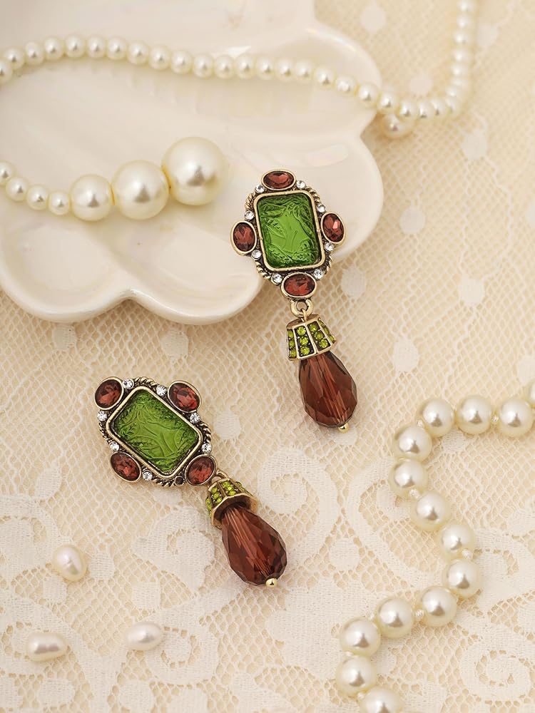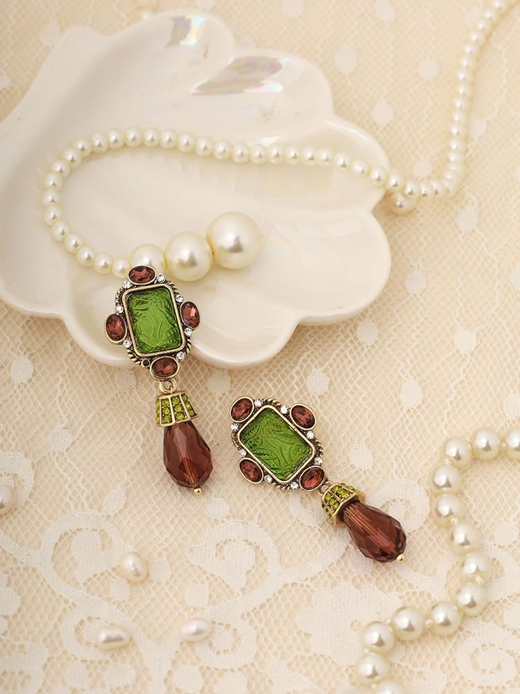 OJERRY البيزنطية الباروك العصور الوسطى الفيكتوري بيان غير النظامية الأخضر البني قلادة تتدلى الأقراط زي المجوهرات والاكسسوارات الزي هدايا رومانسية باردة للنساء المتدلية في الثلاثينيات من العمر