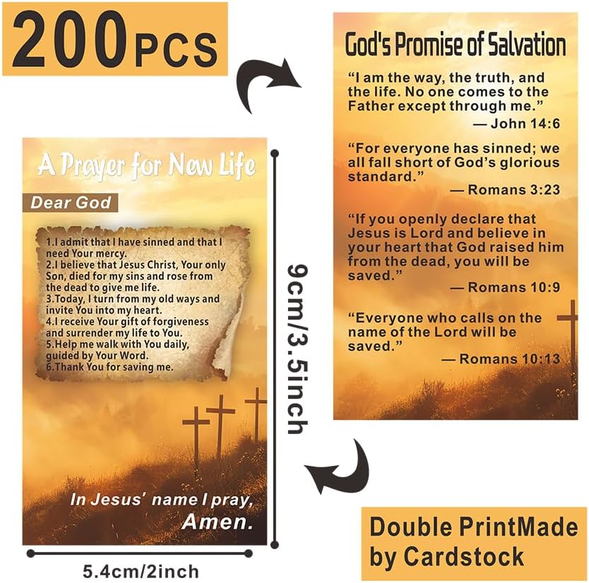 200 قطعة من بطاقات الكتاب المقدس المسيحية ذات الوجهين - طباعة رسائل ملهمة "صلاة من أجل حياة جديدة" للتواصل مع الكنيسة ومشاركة الكتاب المقدس والتشجيع الروحي