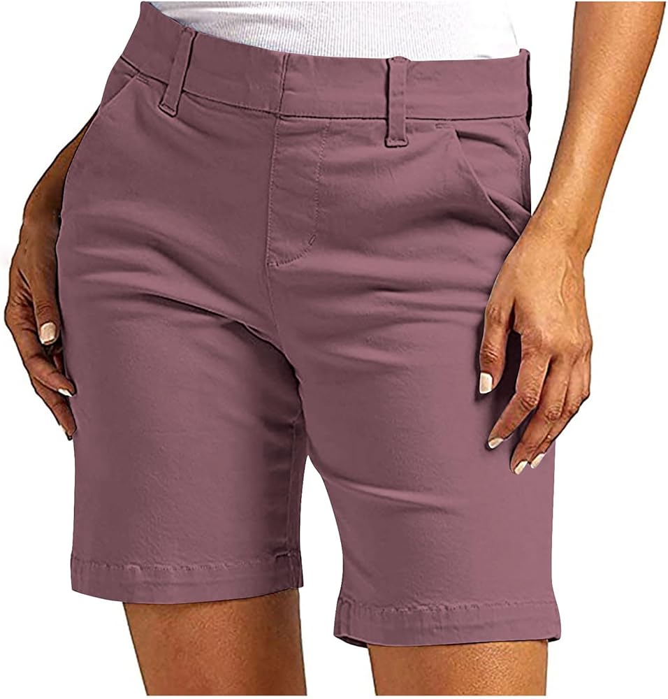 Quick-Dry, Moisture-Wicking Fabric: These women's hiking and golf shorts are made from quick-dry fabric that wicks away moisture, keeping you cool and dry during outdoor activities like hiking, golfing, or travel, womens 7 inch inseam shorts, high waisted chino shorts women