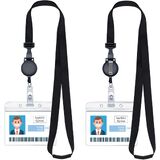 حبل قابل للسحب لحامل شارة الهوية، مشبك أمان، مشبك قابل للتعديل، مشبك حزام بكرة الشارة مع حامل بطاقة بسحاب مقاوم للماء، أسود [مجموعة ارتداء 3 في 1] (عبوتان (أفقية))