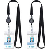 حبل قابل للسحب لحامل شارة الهوية، مشبك أمان، مشبك قابل للتعديل، مشبك حزام بكرة الشارة مع حامل بطاقة بسحاب مقاوم للماء، أسود [مجموعة ارتداء 3 في 1] (عبوتان (أفقية)) in Kuwait