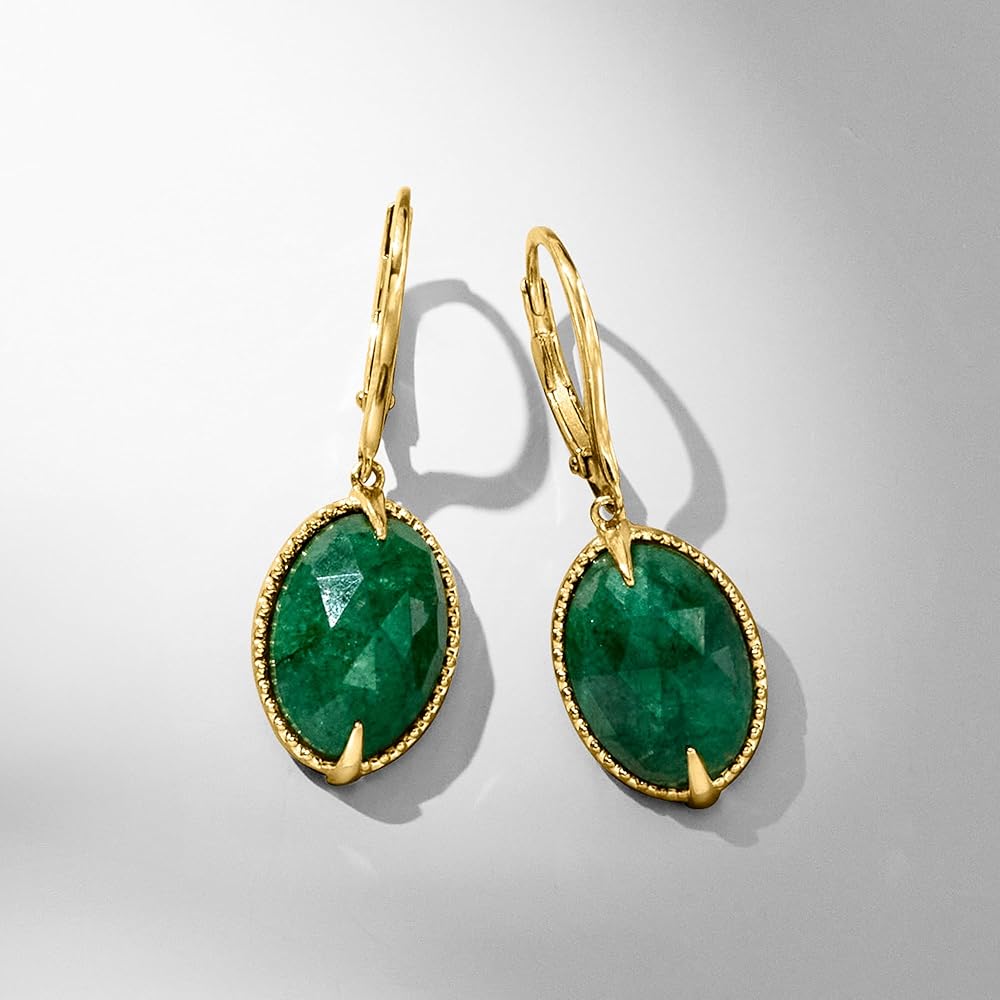 - أقراط من الذهب الأصفر عيار 18 قيراطًا فوق الفضة الإسترليني والزمرد للنساء.