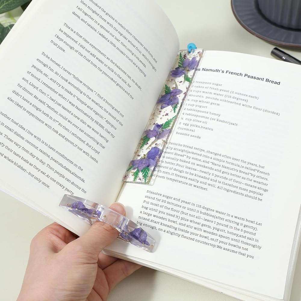 【Encased Dried Flowers for a Unique Reading Companion】 Our resin book page holder and resin page holder feature real dried flowers preserved in clear resin (bookmark 14x2.5cm/5.51x0.98in), book page thumb holder creating a beautiful, natural detail that thumb page holder makes each reading session feel special