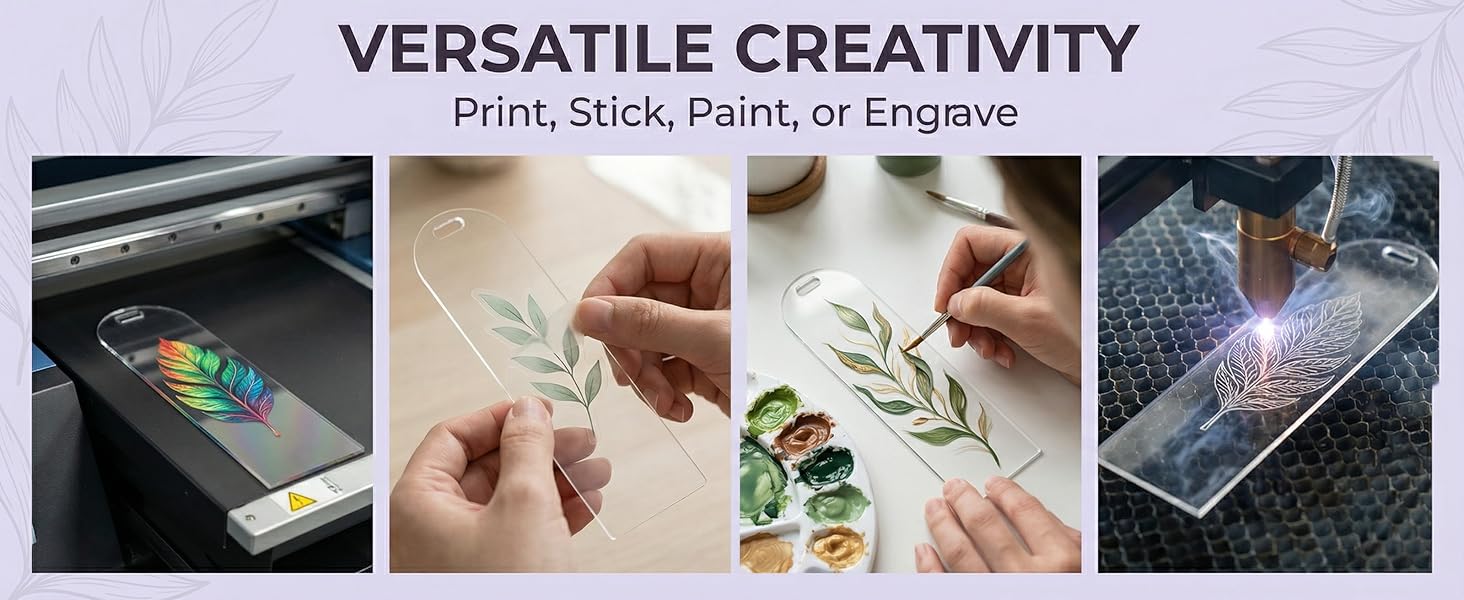 تطبيقات حرفية متعددة الاستخدامات: تتميز كل فارغة من الأكريليك بفتحة مثقوبة بدقة لسهولة التركيب مما يجعلها مثالية ليس فقط كقراءة الإشارات المرجعية ولكن أيضًا كزينة لبطاقات الأمتعة أو بطاقات عرض المجوهرات.