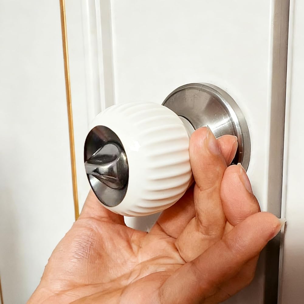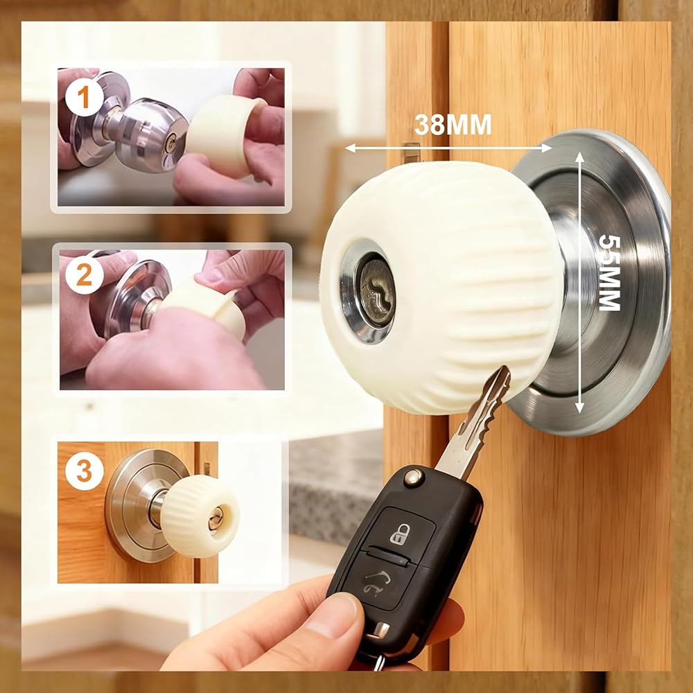 Easy to Use:Niversal design fits most round door handles without screws or glue—simply align and snap into place for a secure fit. Removal is just as easy.