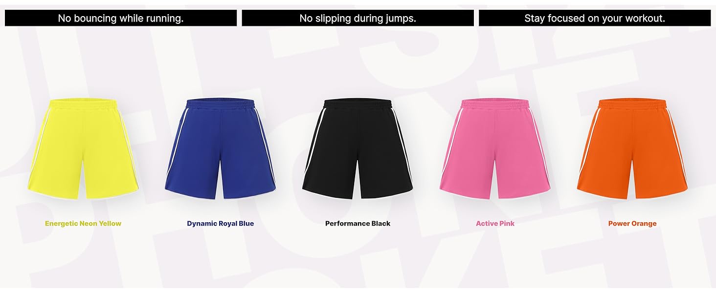 الألوان العصرية: شورت أسود للفتيات، شورت أصفر نيون مشمس، شورت برتقالي للفتيات، شورت وردي فاقع (شورت وردي نيون)، وشورت أزرق للفتيات. سواء كانت تحب الملابس الجاهزة أو ملابس النيون للفتيات، فهناك لون يناسبها.