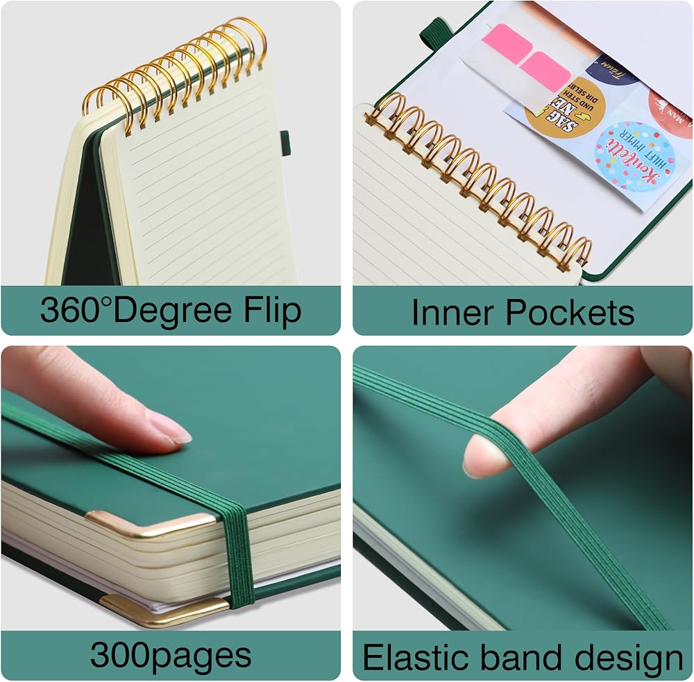 【غطاء جلدي مقاوم للماء】يحمي الغطاء الجلدي الفاخر المقاوم للماء من البولي يوريثان، المعزز بأربعة زوايا ذات حواف ذهبية، صفحاتك من البلى، مما يجعله دفتر اجتماعات أنيقًا يتميز بالوظيفة والأناقة. يحافظ حزام الإغلاق المرن على دفتر الملاحظات الحلزوني الخاص بك مغلقًا بشكل آمن، بينما يسمح تصميم الغطاء الصلب بالكتابة المحمولة بشكل مريح بغض النظر عن مكان وجودك.