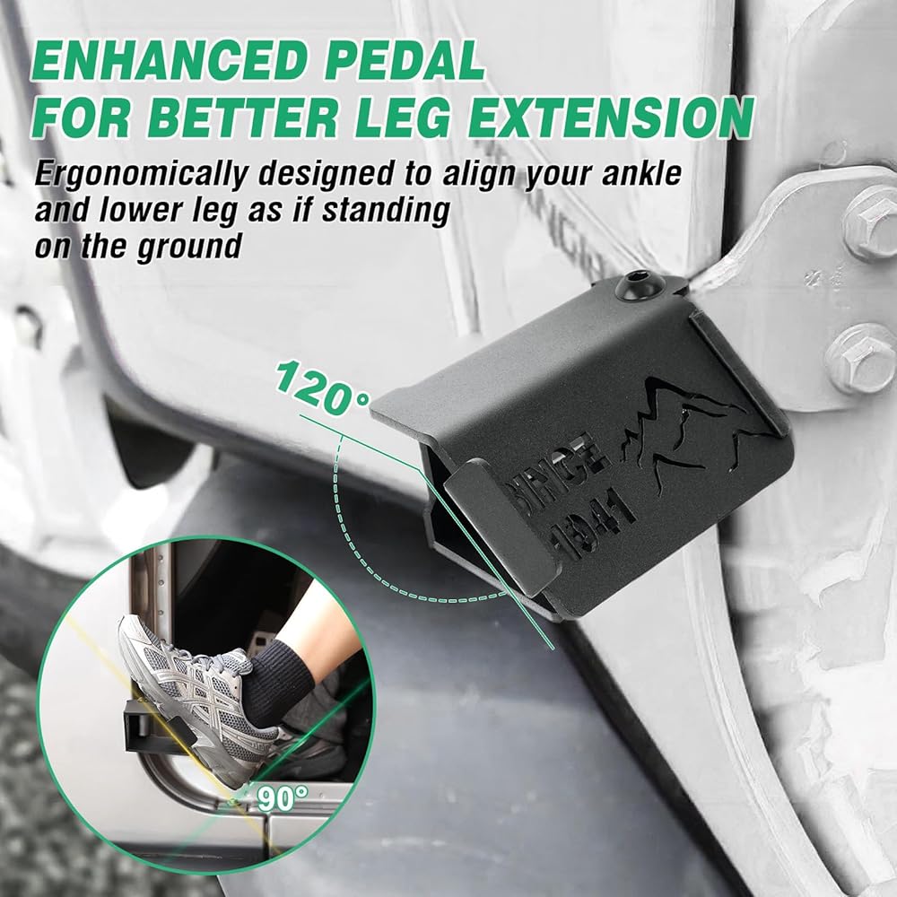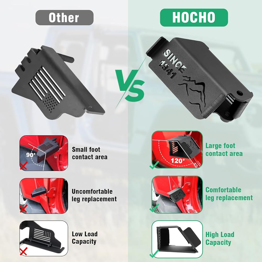 • 【ERGONOMICALLY OPTIMIZED】HOCHO Jeep Foot Pegs Doors off feature a 120° tilt & wider design for better grip & comfort. Aligns ankles & keeps calves perpendicular, reducing slip risk. Perfect upgrade for off-road adventures.