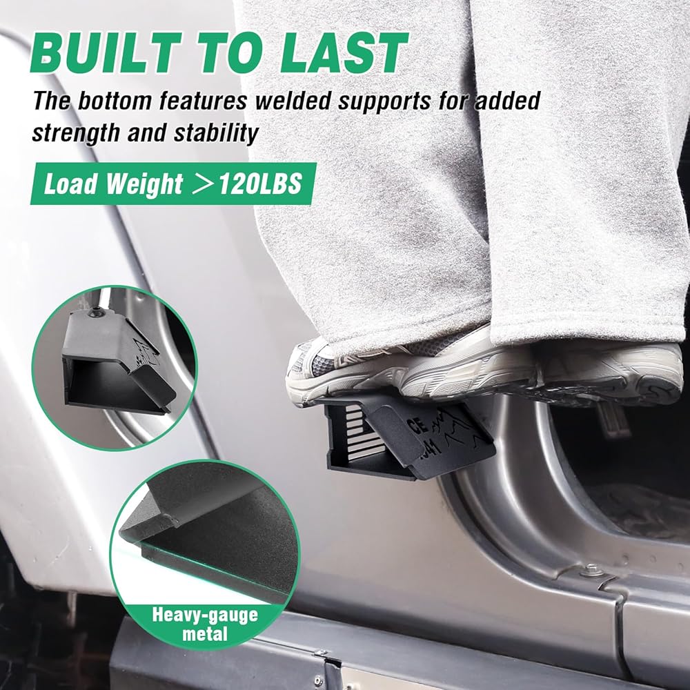 • 【COMPATIBILITY】Jeep Foot Pegs Doors off fit for 2007-2018 Jeep wrangler accessories JK JKU, 2018-2025 Jeep wrangler accessories JL JLU and 2020-2025 Jeep Gladiator accessories JT. An essential accessory for Jeep Wrangler, especially when driving without doors
