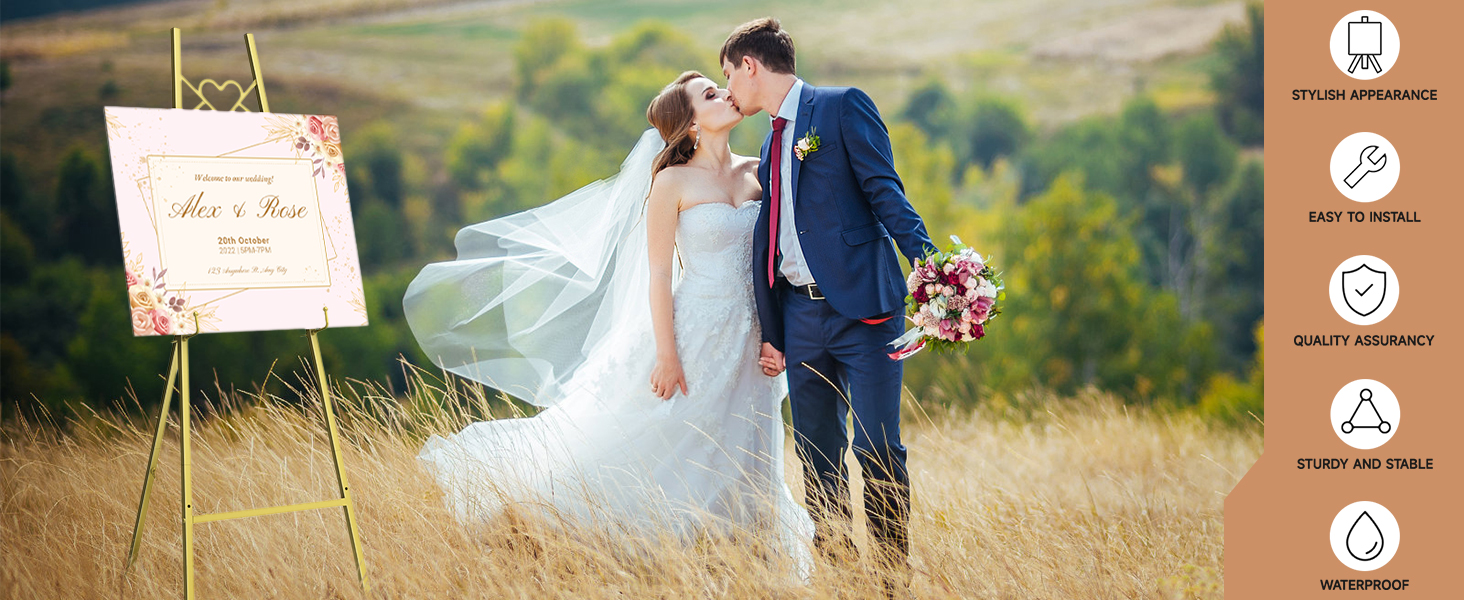 حامل حامل ذهبي مقاس 56 بوصة للعلامة، حامل عرض عالي التحمل مع سلسلة قابلة للتعديل، حامل فني بتصميم مغلف على شكل قلب للوحات، لافتة الزفاف، الملصقات، المرايا، الأعمال الفنية