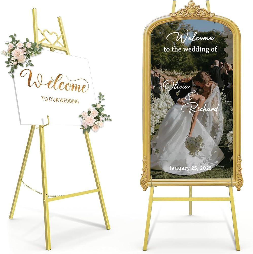 • ارتفاع قابل للتعديل: هيكل ثلاثي القوائم قوي مع 3 فتحات ارتفاع - قابلة للتعديل. ما عليك سوى لف مقابض الضبط لتخصيص ارتفاع اللوحات أو الملصقات أو لافتات الزفاف، حيث يلبي حامل الحامل الخاص بنا جميع احتياجاتك الإبداعية واحتياجات العرض.