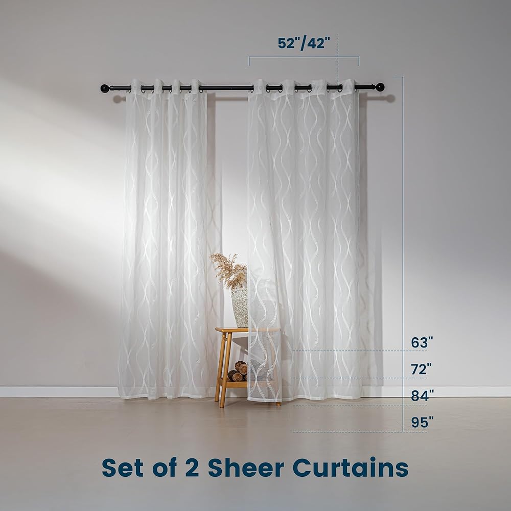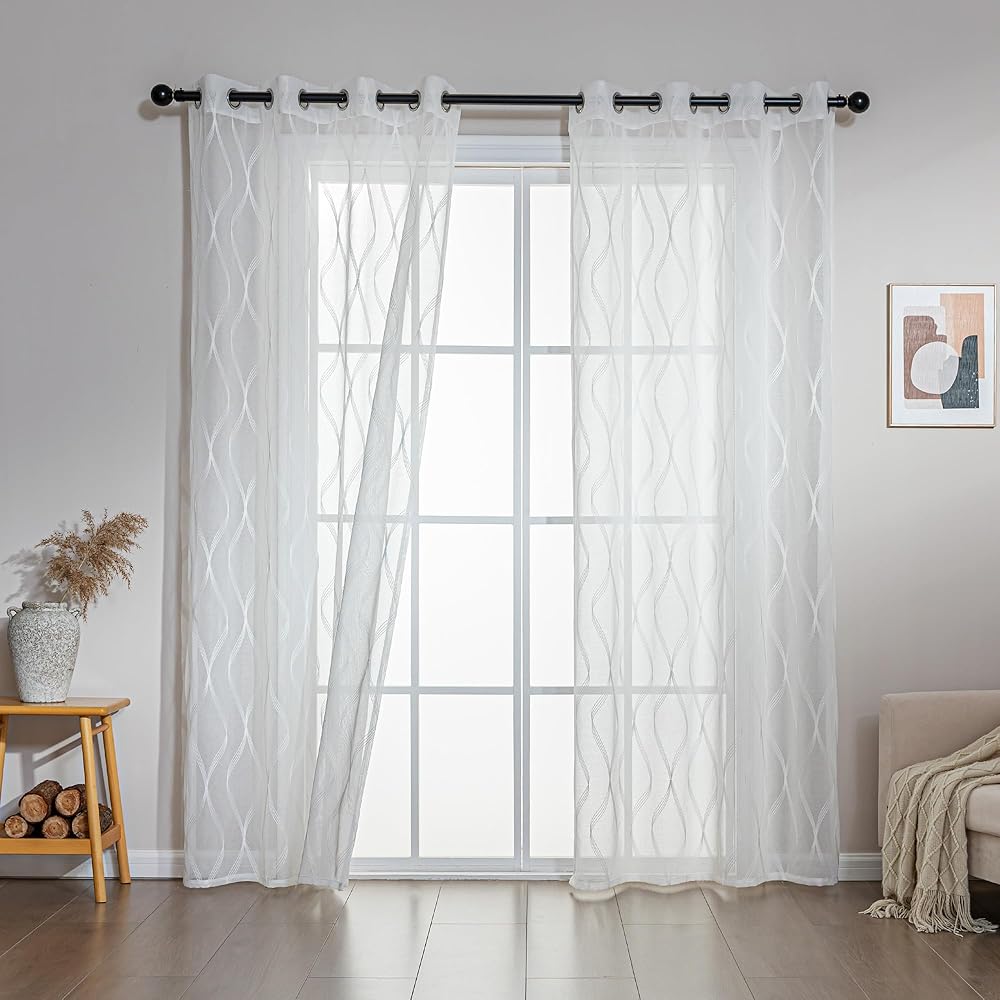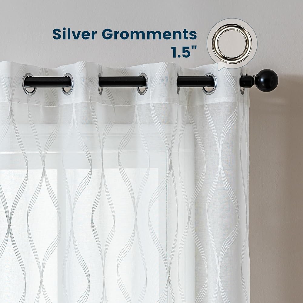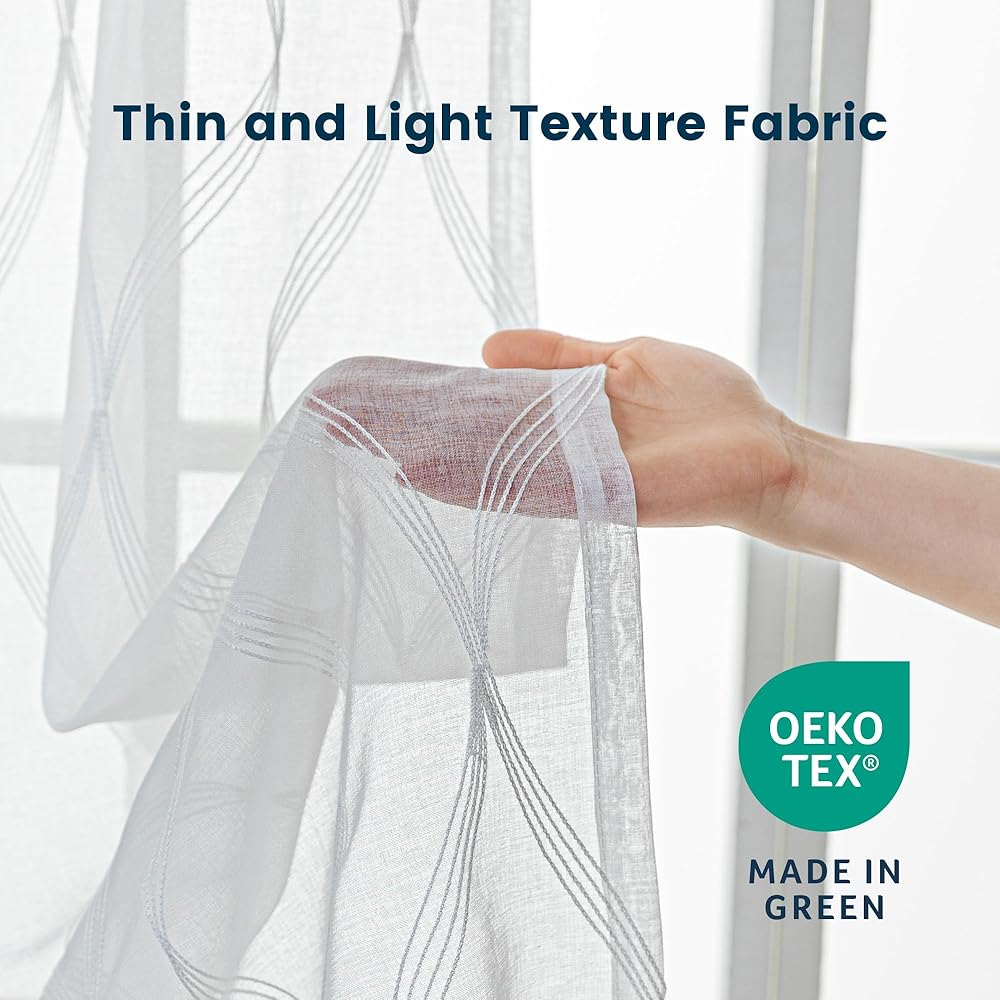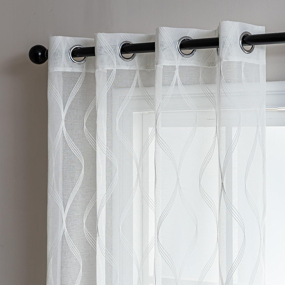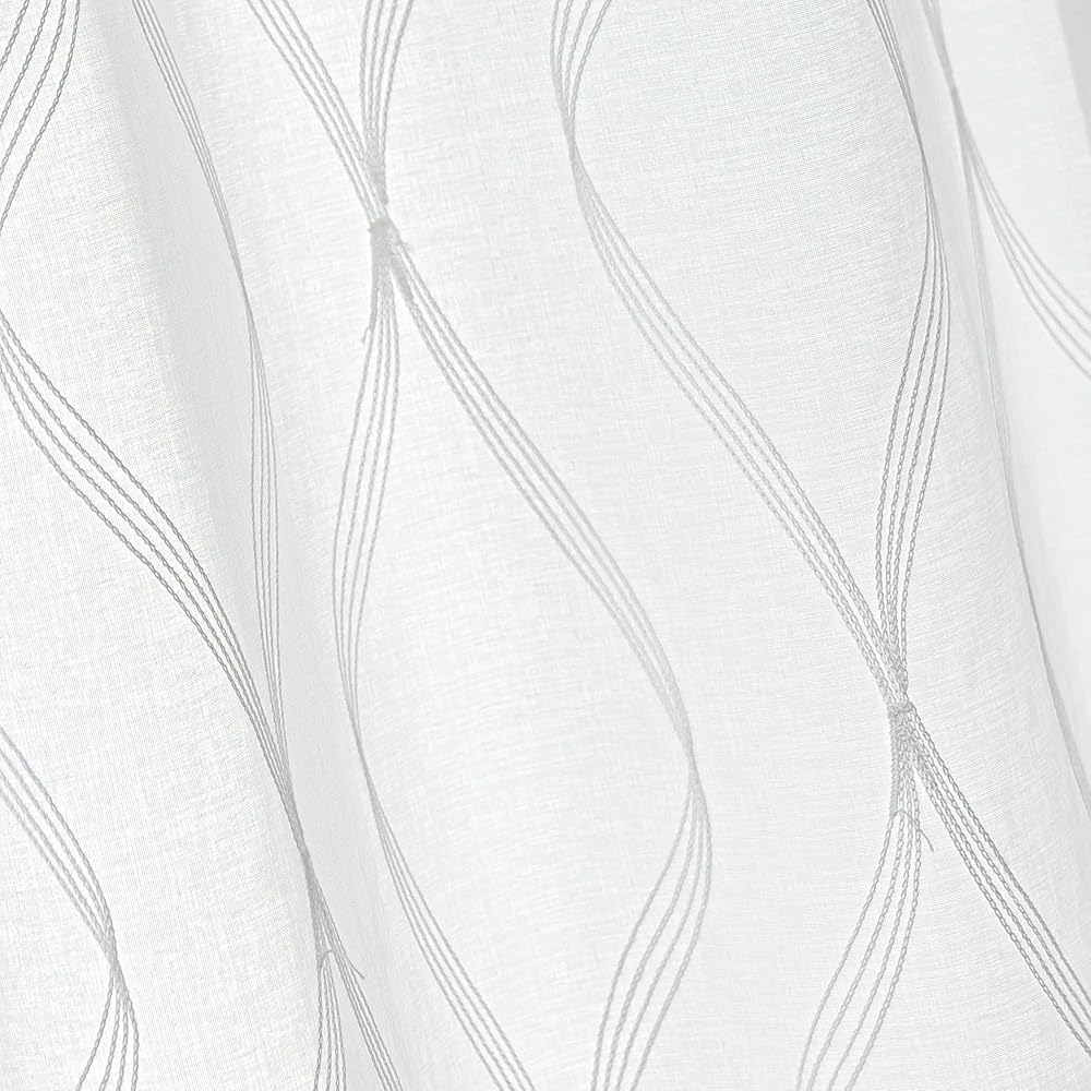 ستائر شفافة لمنطقة النوم لغرفة المعيشة وغرفة النوم، ستائر شفافة مطرزة، ستارة بيضاء شفافة بطول 52 × 84 بوصة من لوحتين، بيضاء متعددة الخطوط