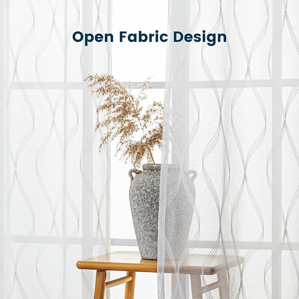 • تصميم مطرز: تتميز هذه الستائر البيضاء الشفافة بتطريز دقيق على قماش أبيض شفاف ناعم، وتضيف لمسة من الأناقة والملمس إلى مساحة معيشتك. تعزز التفاصيل الدقيقة التصميمات الداخلية الكلاسيكية والحديثة، مما يجعلها مثالية لغرف المعيشة وغرف النوم والمزيد
