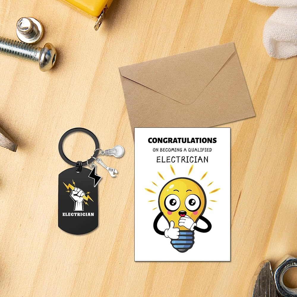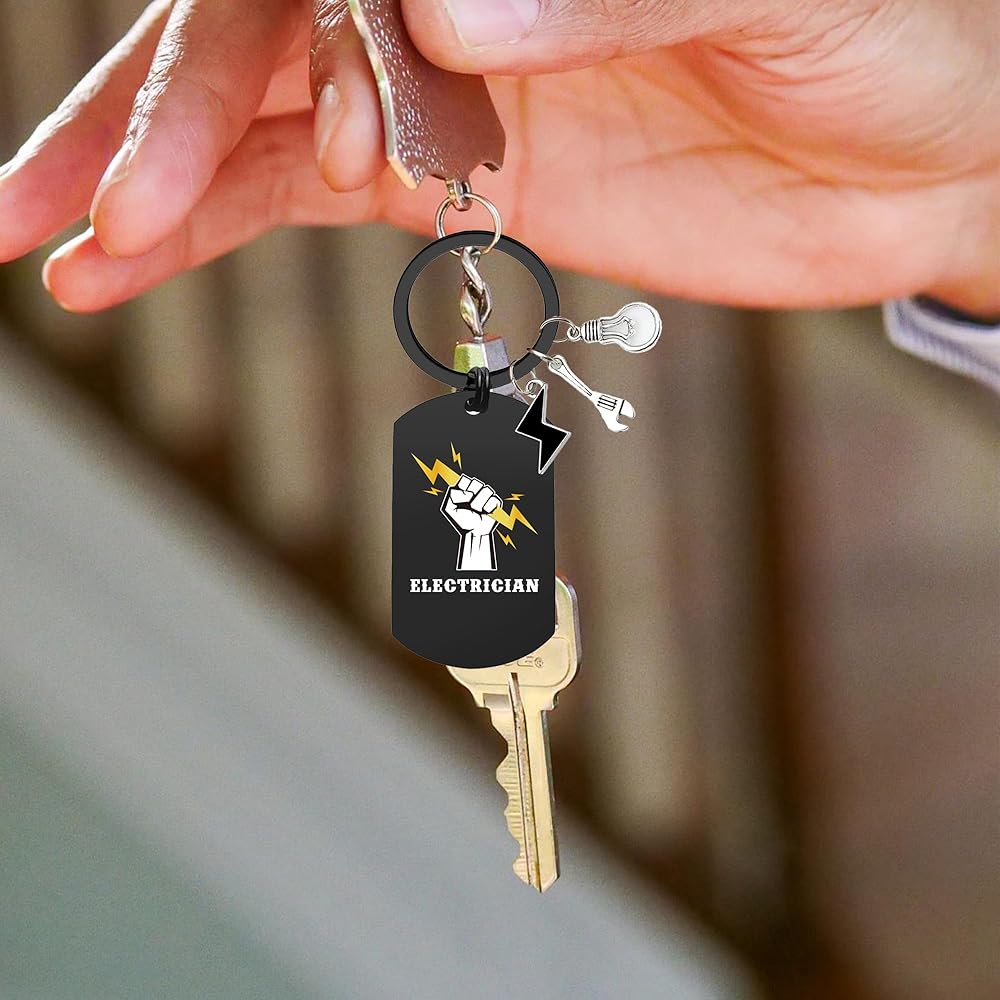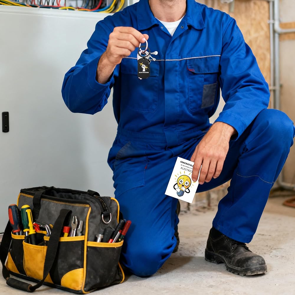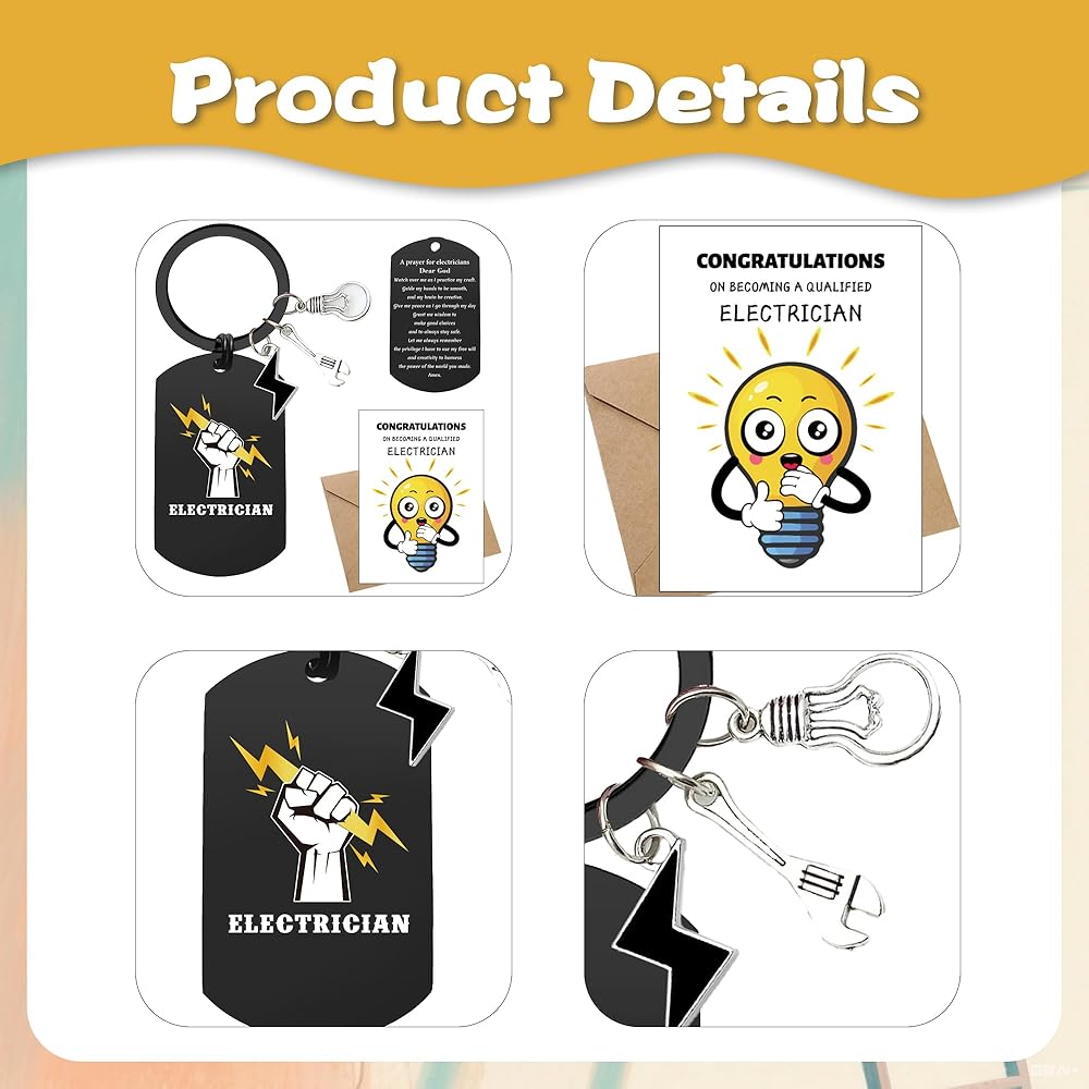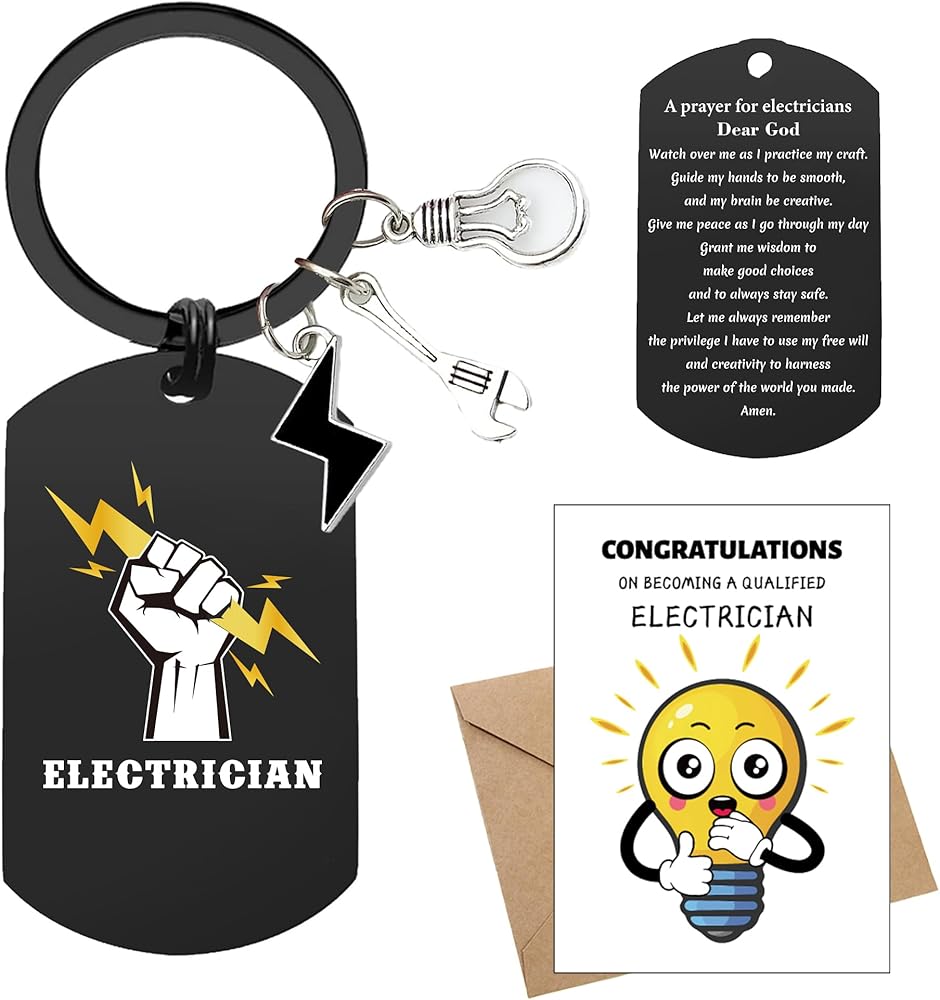 سلسلة مفاتيح هدايا تقدير كهربائي للرجال - سلسلة مفاتيح واحدة منقوشة بصلاة كهربائي ذات مغزى، 3 قلادات، 1 بطاقة تهنئة مع مظروف له هدية صلاة للأصدقاء والزوج كهربائي