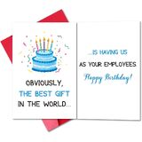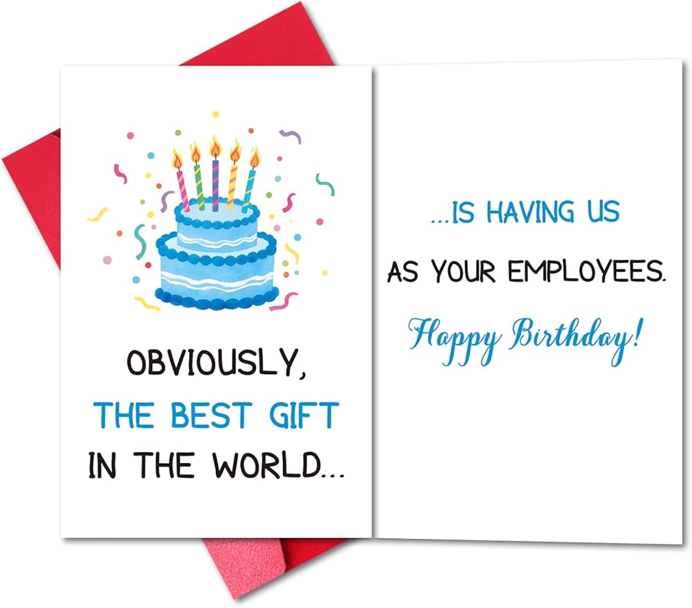 روح الدعابة والصفيق: بطاقة B-day هذه مثالية لصديقك في العمل! يبني الخارج النكتة بعبارة "أفضل هدية في العالم..." ويكشف الداخل الجملة التالية: "... هل تجعلنا موظفين لديك". من المؤكد أن تحصل على ضحكة جيدة