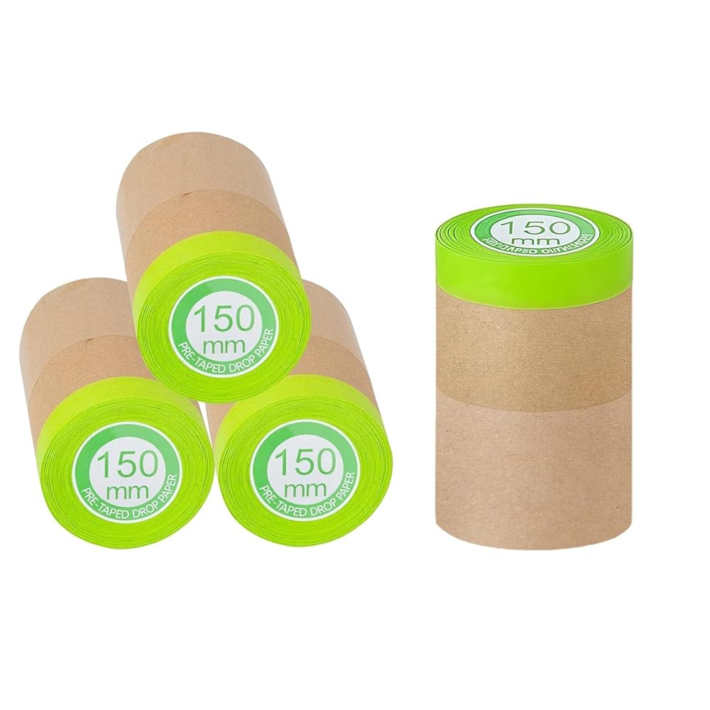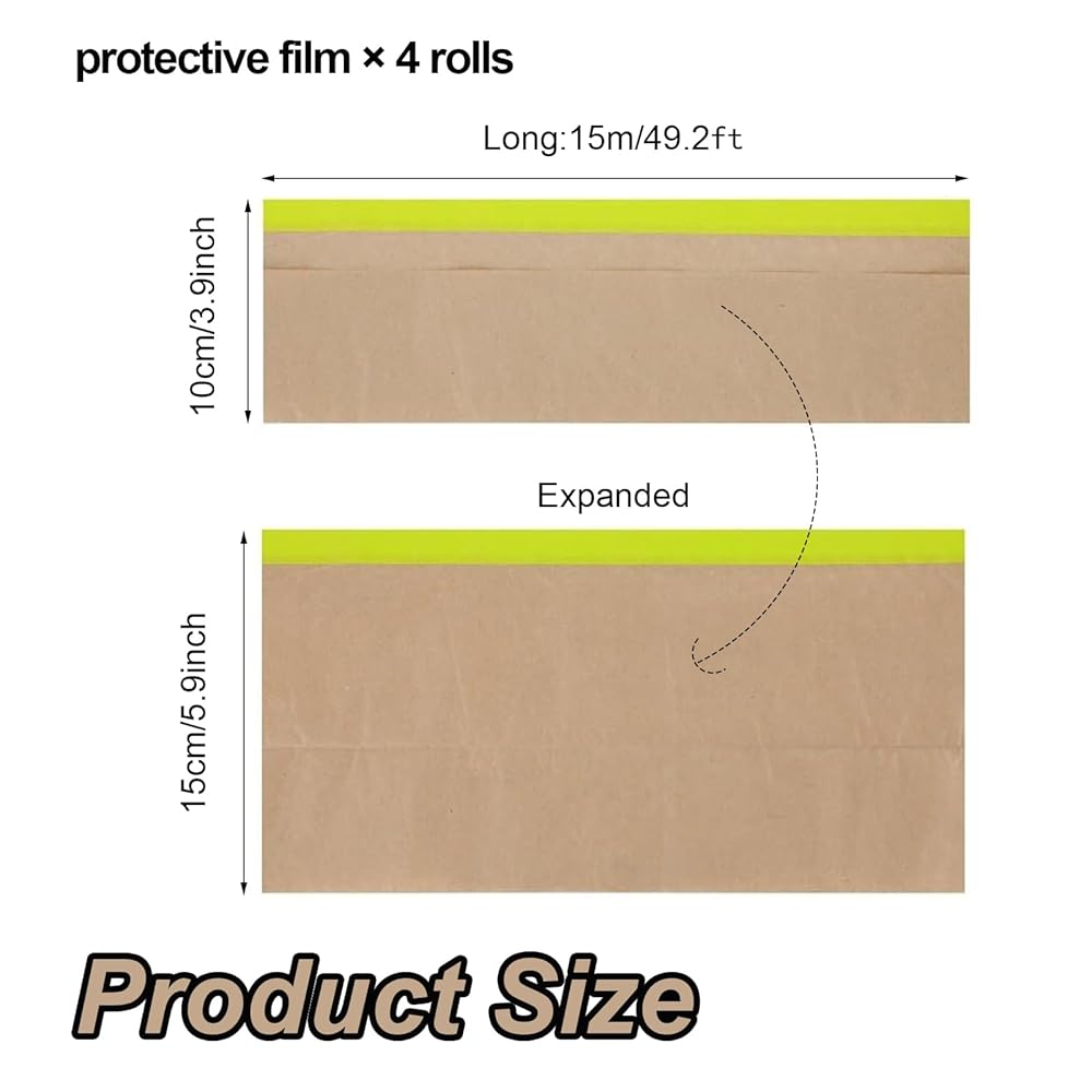 4 Rolls Pre-Taped Masking Paper for Painting, Tape and Drape Painters Paper, Paint Adhesive Protective Paper Roll for Covering Skirting, Door Frames, Cars