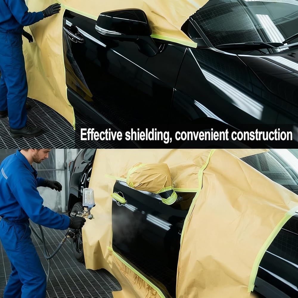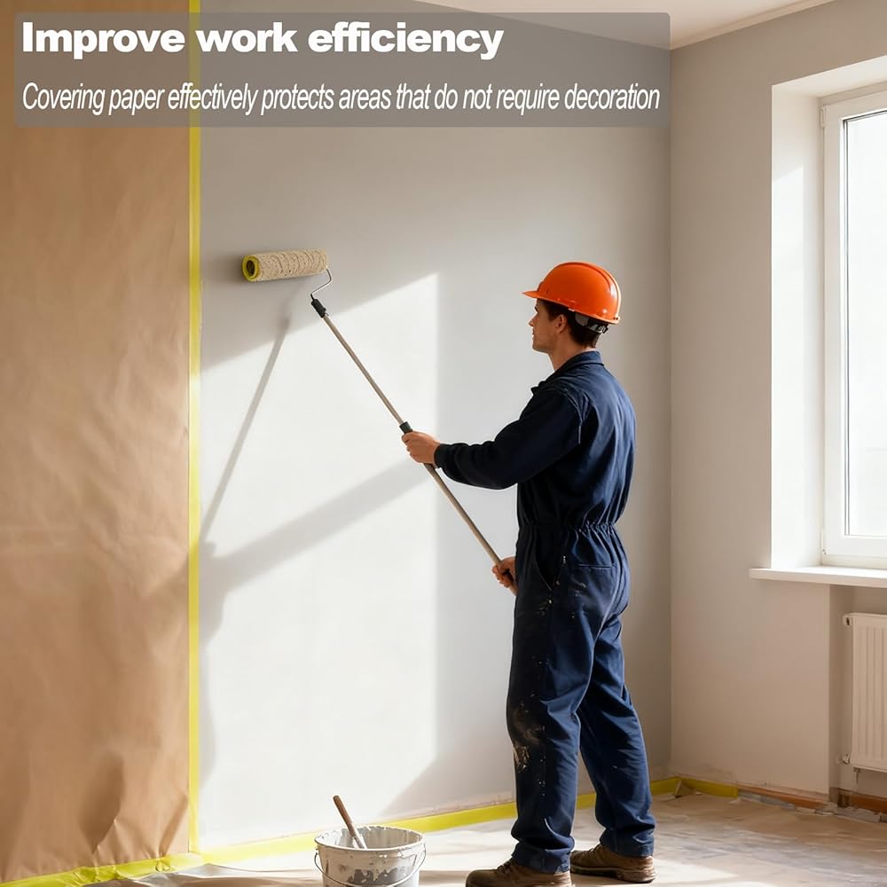 Masking Paper with Convenient Adhesive: Our masking paper combines tape and protective paper in one design. You don't need extra tape to stick it onto walls or cars. Simply press the tape on the protective paper for effortless adhesion, bringing you ultimate convenience.