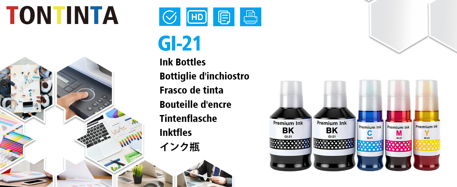1. محتوى العنصر: خراطيش حبر زجاجات الحبر المتوافقة مع GI21 GI-21 مكونة من 5 عبوات متعددة. بالإضافة إلى خيارات زجاجات الحبر GI-21 الأخرى، توفر الزجاجات المتوافقة خيارًا آخر موثوقًا به.