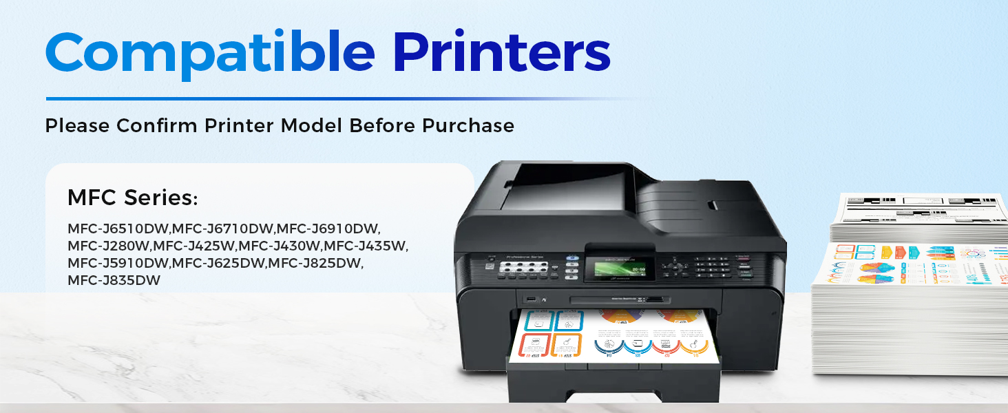الطابعات المتوافقة: خراطيش حبر Jettruemedia LC71XL LC75XL LC79XL للطابعة الأخية DCP-J132W، DCP-J152W، DCP-J172W، DCP-J4110DW، DCP-J552DW، DCP-J752DW، MFC-J245، MFC-J285DW، MFC-J4310DW، MFC-J4410DW، MFC-J450DW، MFC-J4510DW، MFC-J4610DW، MFC-J470DW، MFC-J4710DW، MFC-J475DW، MFC-J650DW، MFC-J6520DW، MFC-J6720DW، MFC-J6920DW، MFC-J870DW، MFC-J875DW النافثة للحبر. مناسبة للاستخدام مع المكتب والمنزل الذي يطابق الطابعة الخاصة بك مما يحسن بشكل كبير من كفاءة العمل (خرطوشة غير OEM).