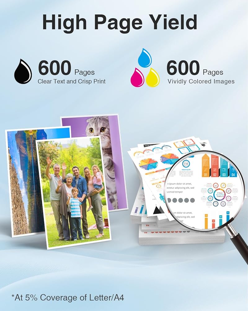 سعة طباعة عالية الإنتاجية: تنتج خراطيش الحبر LC71XL LC75XL ما يصل إلى 600 صفحة سوداء و600 صفحة ملونة (معدل تغطية ورق A4 بنسبة 5%) وتدوم لفترة أطول، وتتطلب عمليات استبدال أقل وتوفر توفيرًا كبيرًا.