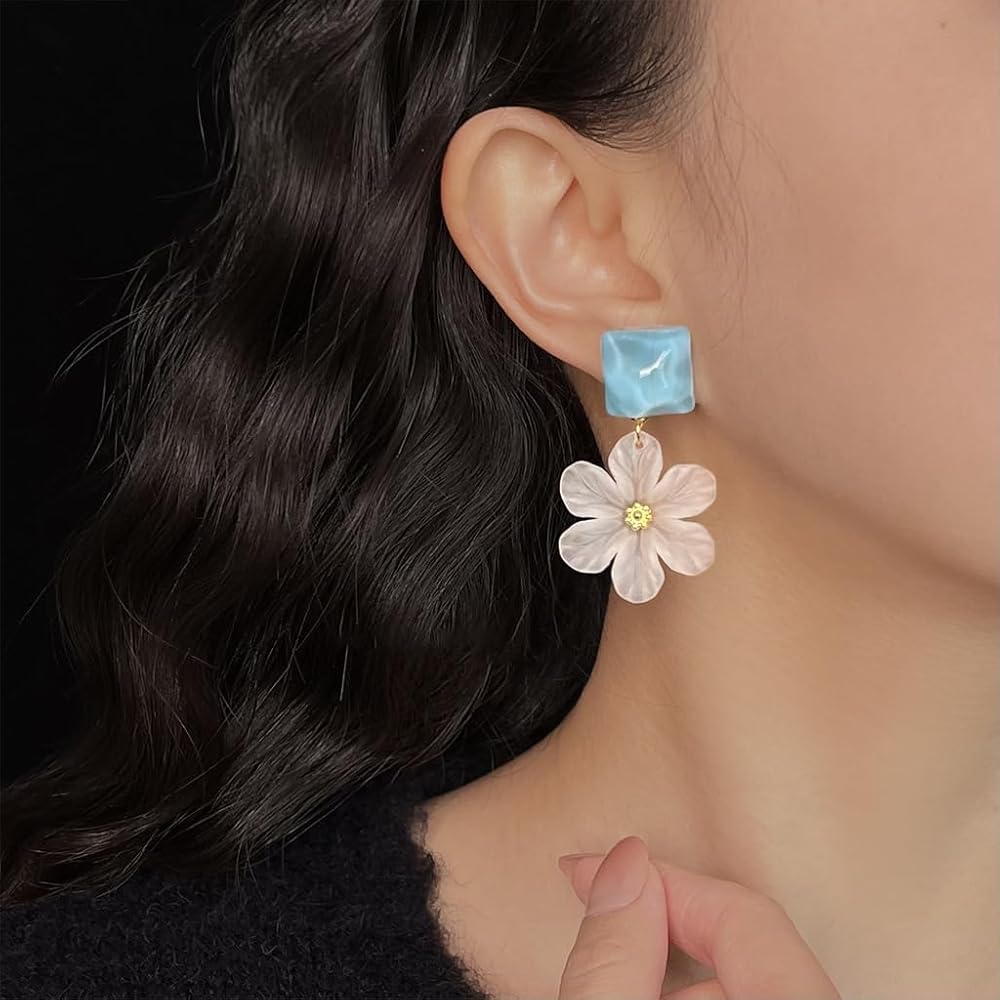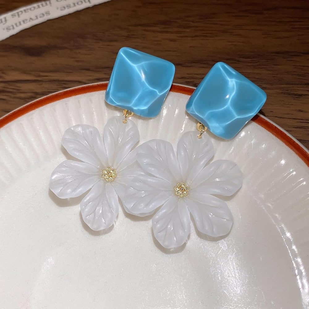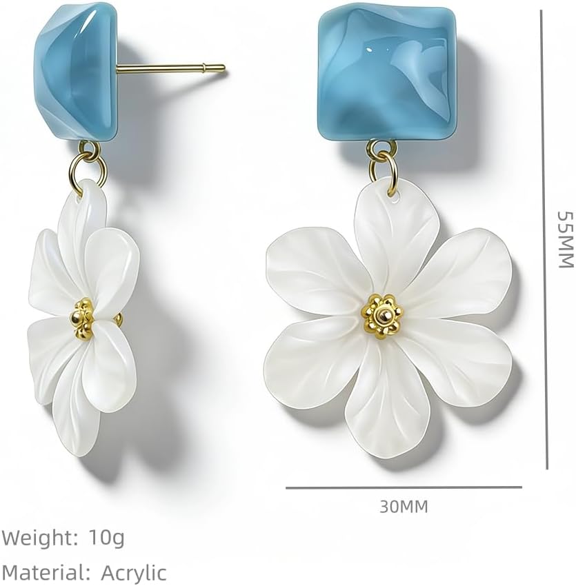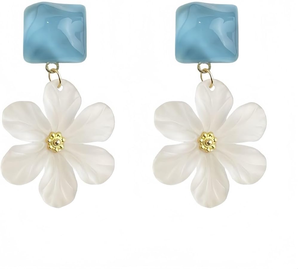 Fresh Design: Featuring a translucent blue stud with a white flower drop, these earrings bring a breezy, summer-inspired charm to your style.
