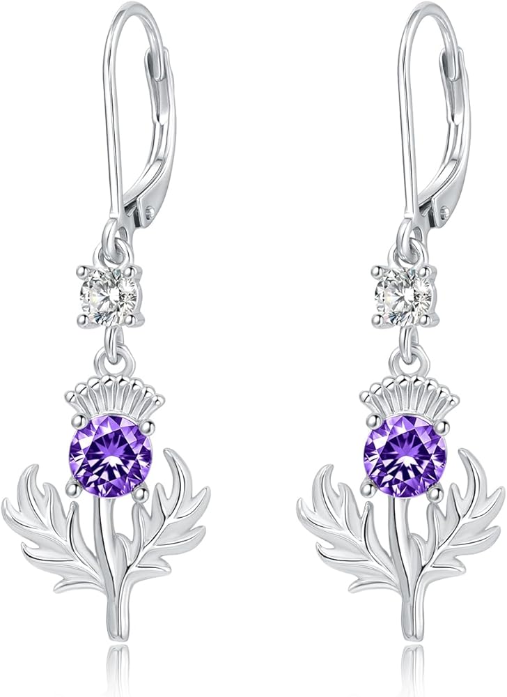 💕Elegant purple scottish thistle earrings,The thistle is the national flower of Scotland and the Scots use the spiny thistle as a symbol of their national resilience against foreign invasion. This scottish thistle stud earrings combine the shimmering purple cubic zirconia, beauty and elegance. Wear it to encourage yourself to live a strong and courageous life.