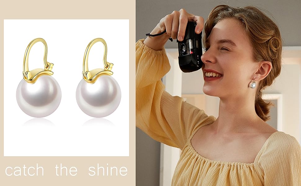 • ♥ جيد للحساسية♥ أقراط اللؤلؤ الأبيض المتدلية الكبيرة مصنوعة من الفضة الإسترلينية الصلبة عيار 925، ومطلية بالذهب الأصفر عيار 18 قيراط. بدون أي مكونات ضارة، فهو خالي من النيكل والرصاص والكادميوم وهو الاختيار الأمثل للأذنين الحساسة.