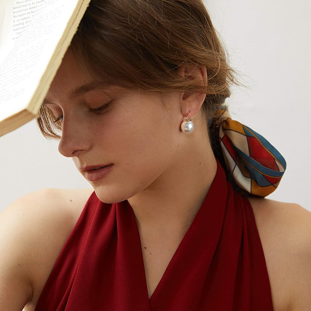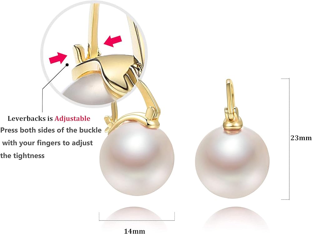 • ♥ أنيقة وبسيطة ♥ لؤلؤة بيضاء مستديرة كبيرة مقاس 14 مم مع ظهر أنيق مطلي بالذهب، أقراط متدلية بسيطة ولكن حديثة من اللؤلؤ توفر اللمسة الناعمة الخالدة التي كنت تبحث عنها للارتداء اليومي أو الزفاف، هذه الأقراط المتدلية مذهلة شخصيًا!