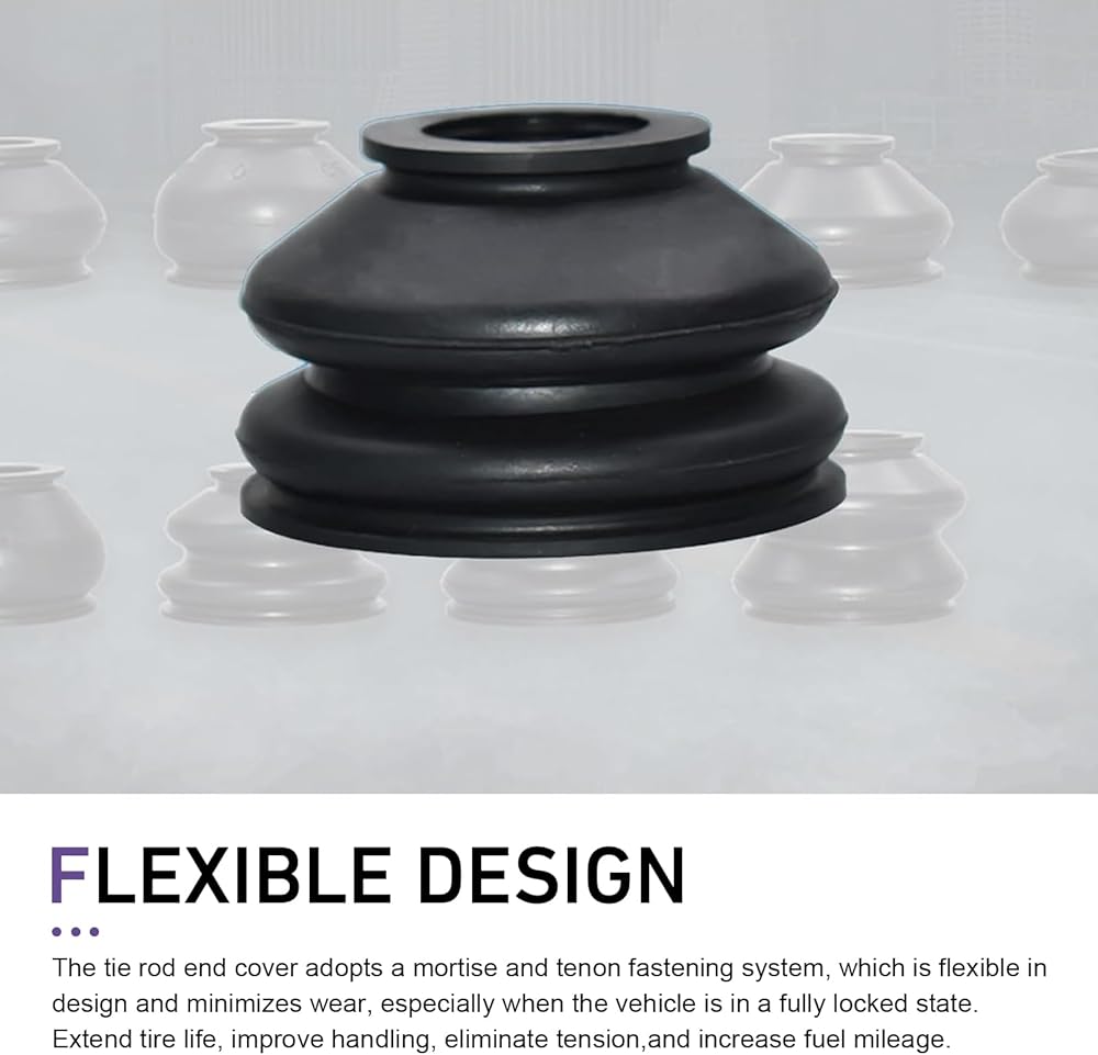 Protection: This tie rod end ball joint boot can effectively block outside dust, rain, mud and sand and other debris from entering the ball head or steering and other parts, avoiding wear and tear or rust, and prolonging the service life of the equipment.