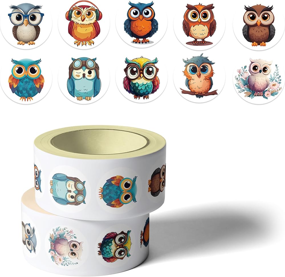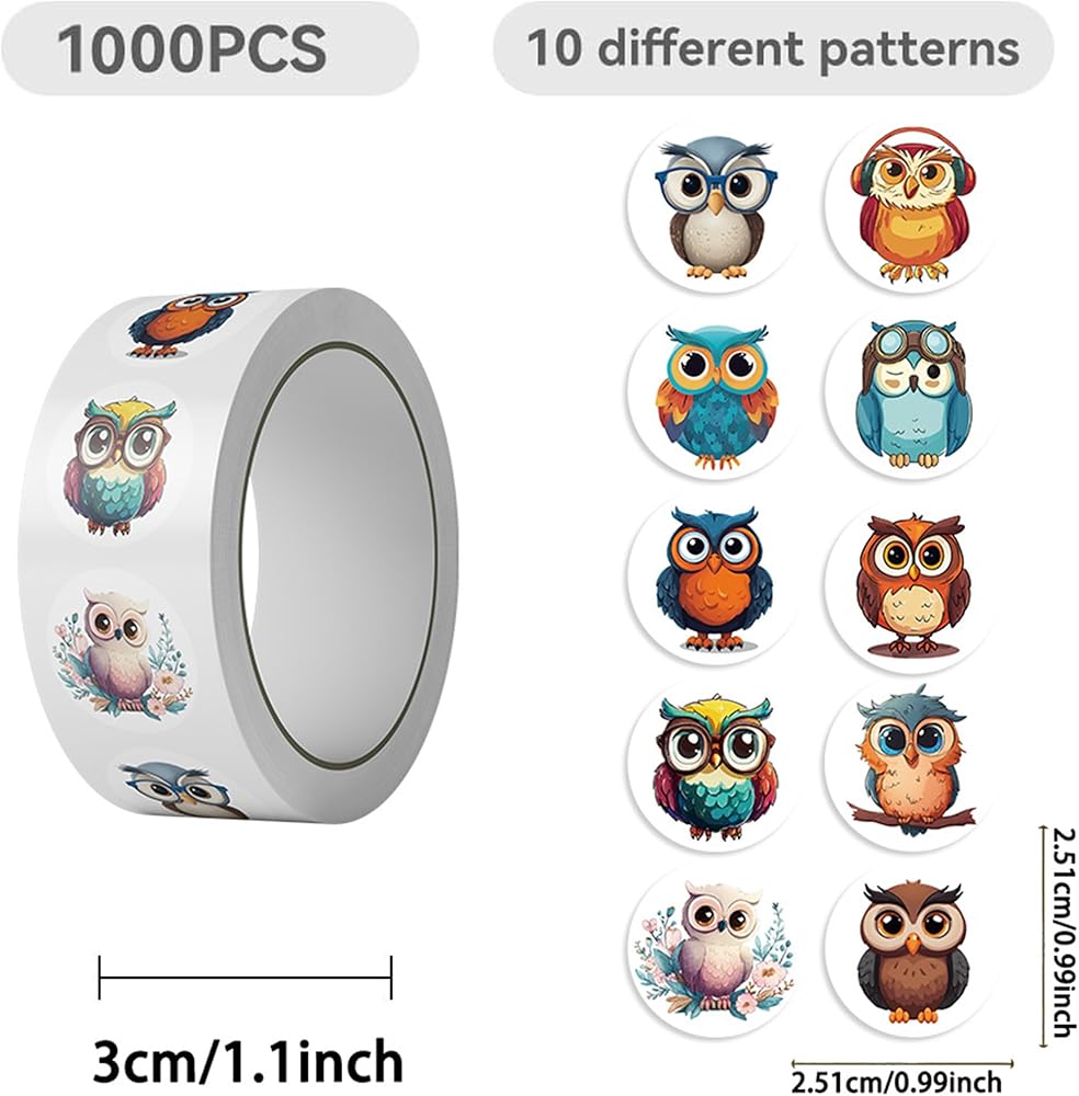 ✓ محتويات العبوة: احصل على لفتين من 1000 ملصق بومة نابضة بالحياة للأطفال، يبلغ قطر كل منها 2.54 سم، مع 10 تصميمات كرتونية فريدة تتميز ببوم رائع مع نظارات وسماعات رأس وقبعات طيار ولمسات زهور لمتعة وإبداع لا نهاية له.